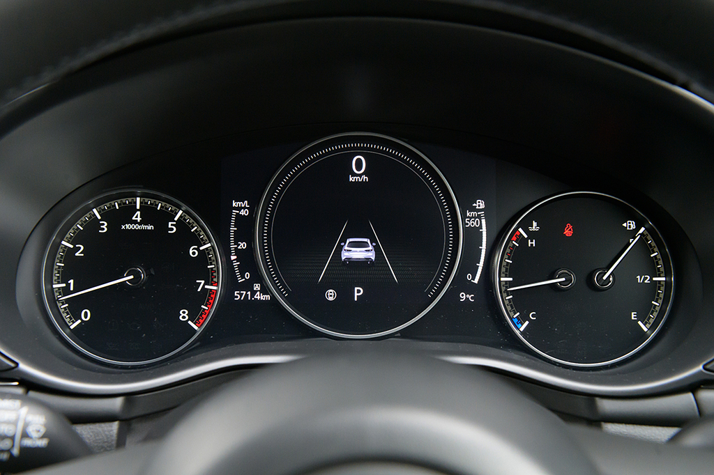 スカイアクティブXを搭載する上級グレード「X Lパッケージ」と比べると、15Sツーリングにはステアリング操作をサポートする“クルージング&トラフィック・サポート”や“アダプティブLEDヘッドライト”、“交通標識認識システム”こそ備わりませんが、同クラスの中では買い得感が高いといえます。