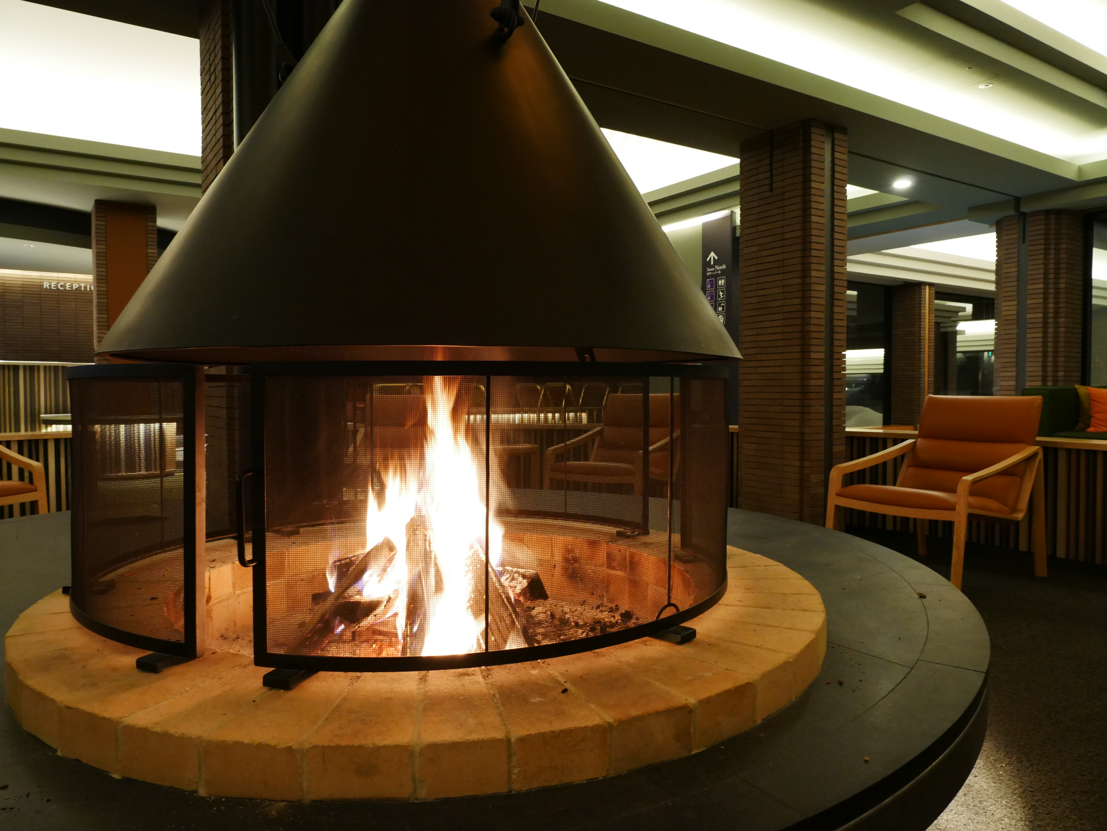 取材中に滞在したのは32階建ての高層タワーホテル「リゾナーレトマム」。ロビーには炎が揺らめく大きな暖炉、18時〜20時の間はスパークリングワインがいただける……というラグジュアリーリゾートです。
