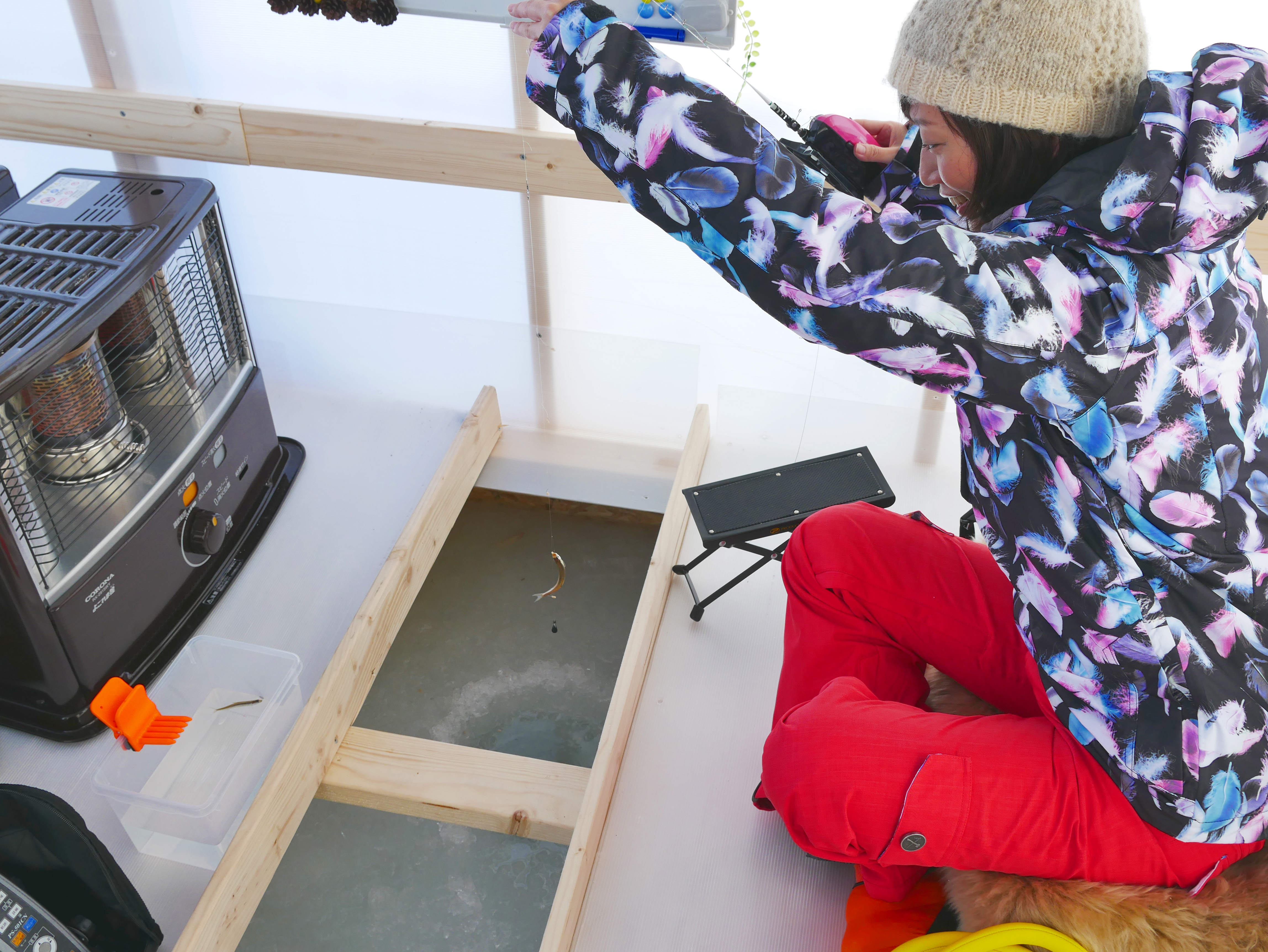 アイスビレッジに続いて体験してきたのは「アイスフィッシング」。有り体に言うと「ワカサギ釣り」ですね。実は私、ワカサギ釣り経験アリなのですが、寒いわ釣れないわであまり良い思い出がないのです。