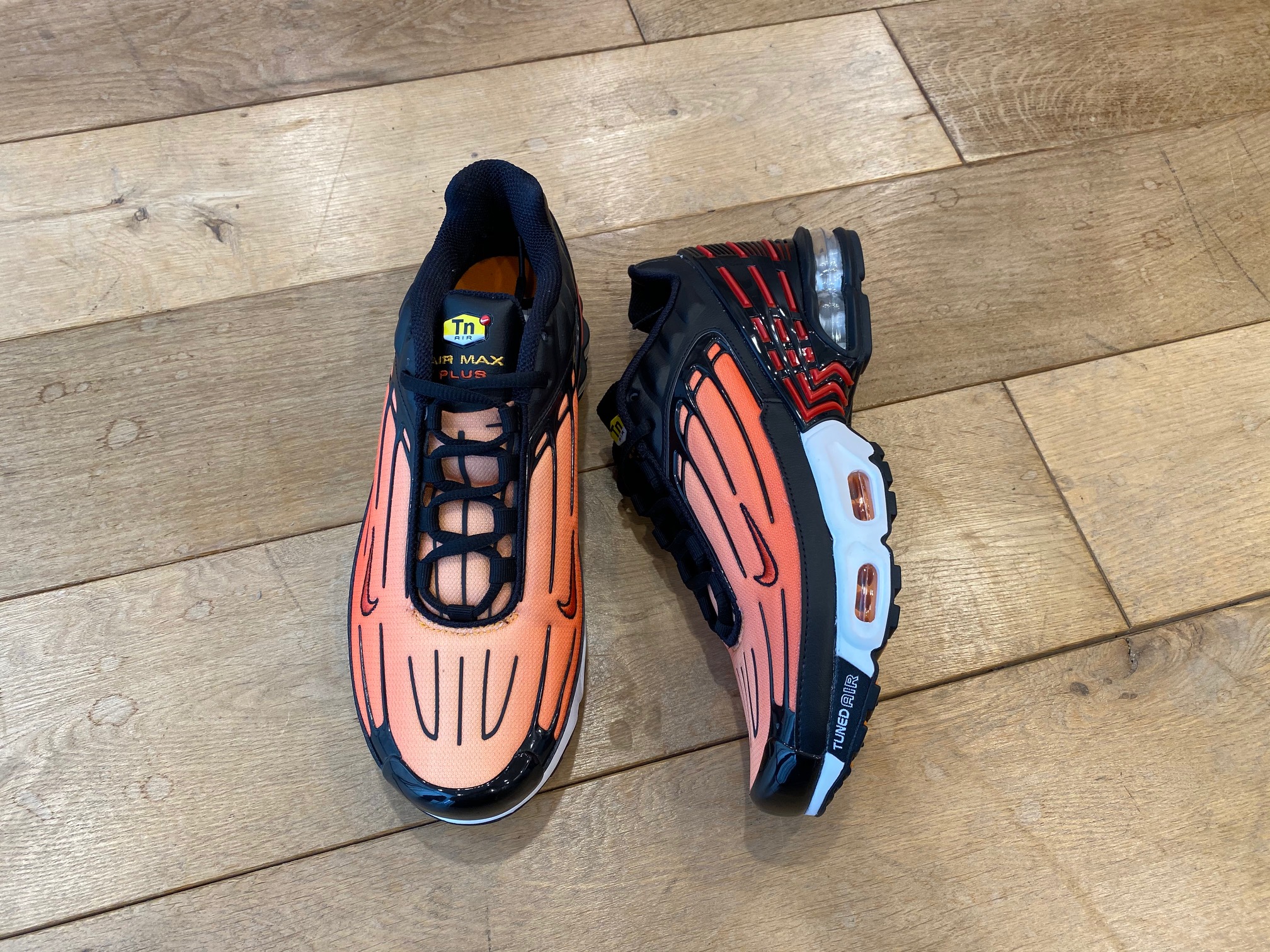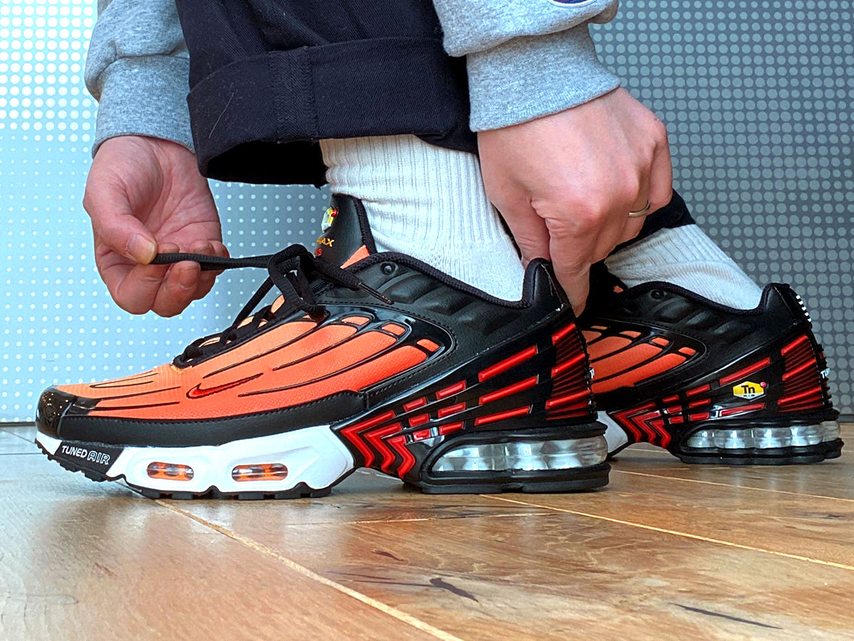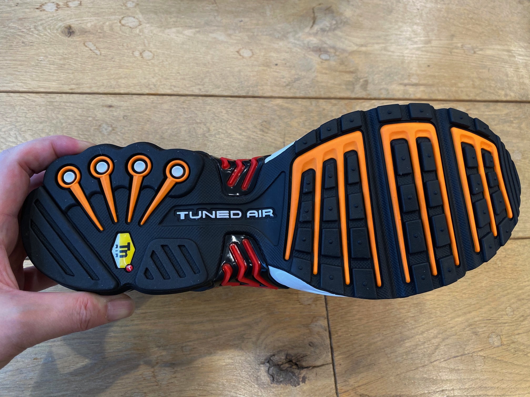 アウトソールはエア マックス シリーズからの流れを汲んだワッフルソールがベース。そこにオレンジやレッドの挿し色が配され、ハイテクデザインが全開バリバリ! 90年代を感じさせますね。