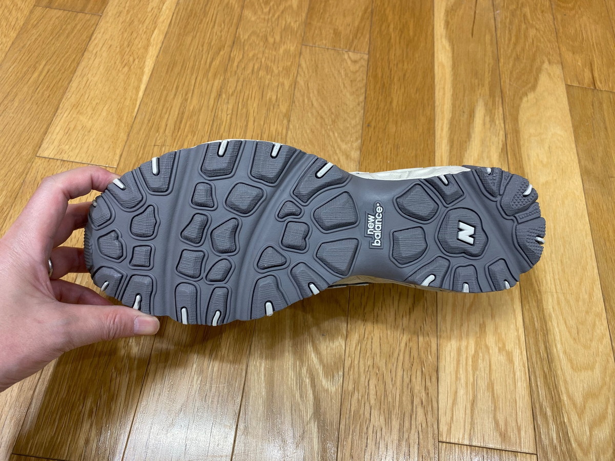 アウトソールには溝の深いラグソールを採用していて、雨などで濡れた路面や荒れ地でも高いグリップ力を発揮してくれます。