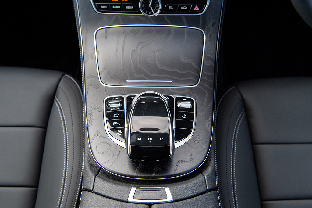 E350deのドライバースシートに腰を下ろし、運転席周りを眺めます。キャビン内も基本的に、ノーマルのEクラスと変わるところはありません。