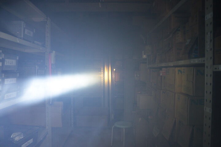 オーソドックスなターボヘッドの配光。狭めの周辺光、その分、光を集めた極端に鋭いスポットが特徴的です。この手のライトの真価は室内レベルでは分かり得ません。周辺光が到達できないその先の距離がこいつのレンジでございます。100m先から幻惑させることができる遠射性が特徴です。