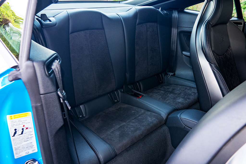 まずシートには、カラダを適度に包み込む、スポーツカーならではのホールド性に優れたタイプを採用。シート生地には、アルカンターラとレザーという上級なマテリアルをおごるなど、インテリアはTTよりスポーティかつラグジュアリーな仕立てとなる。