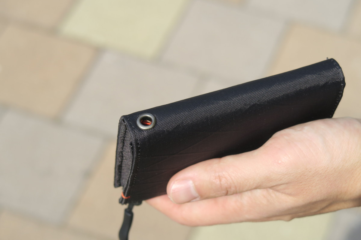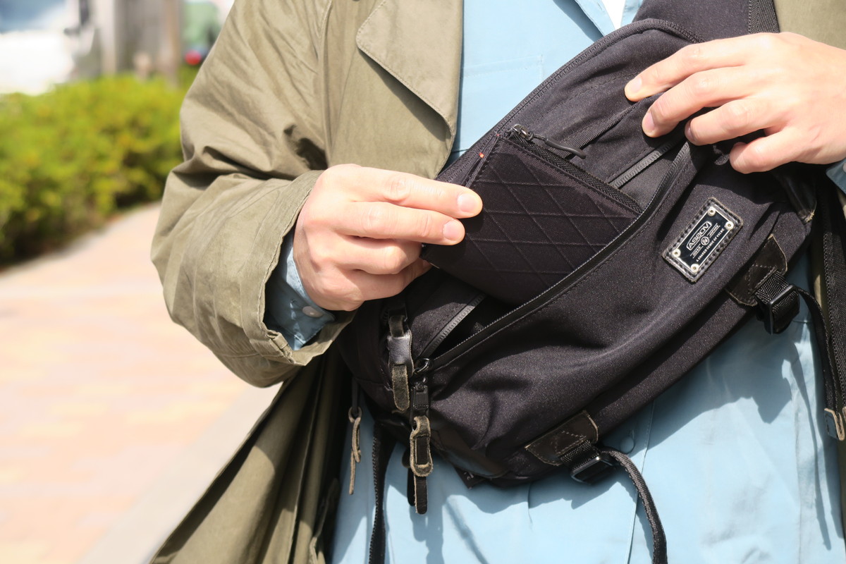 またアウトドア素材を使ったミニ財布は、キャンプやフェスなどのレジャーシーンでは重宝するものの、普段使うにはちょっと幼すぎるかなという懸念もありました。でもこの財布はブラックなので、いろいろな服に合わせやすく、硬さのあるしっかりした作りなので普段使いでも幼さは全く気になりませんでした。