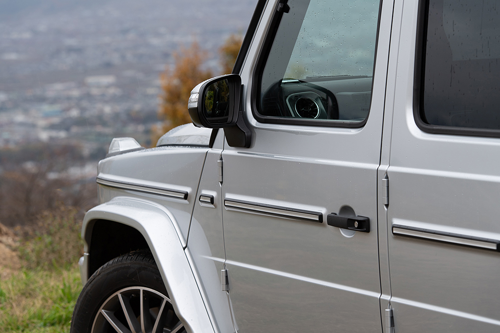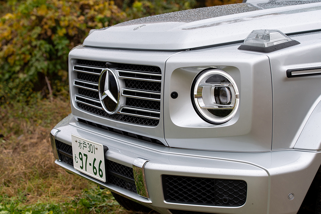 最新のGクラスは、一見しただけでは区別がつきづらいほど、従来モデルのイメージを継承したエクステリアデザインを採用していますが、間近で見ると、わずかに曲面となったガラスやボディパネルにより、モダンになったと感じられます。