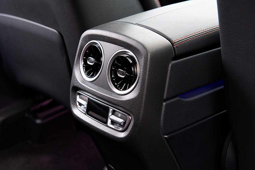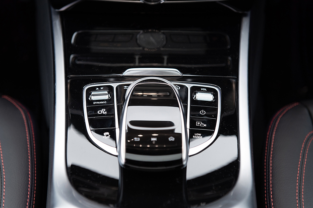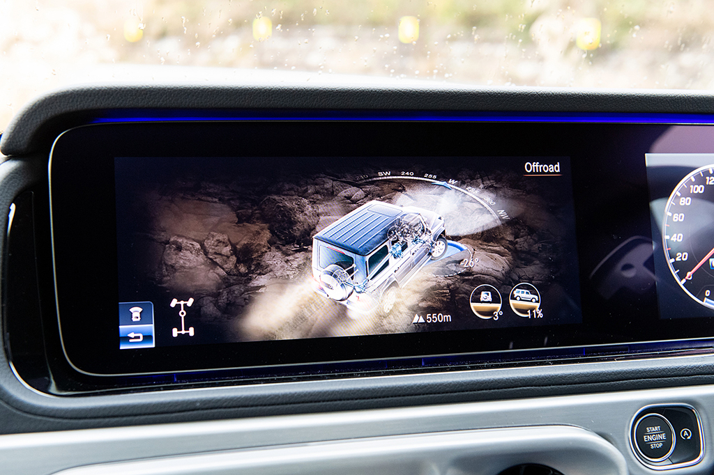 組み合わされるトランスミッションは、9速のAT。駆動方式は、フロント40:リア60のトルク配分となるフルタイム4WDを採用しています。いにしえのGクラスのような、ハイ/ロー切り換えのトランスファーレバーこそ備わりませんが、センターコンソールのスイッチ操作で、クロスカントリー走行に適したデフロックを行うことも可能です。