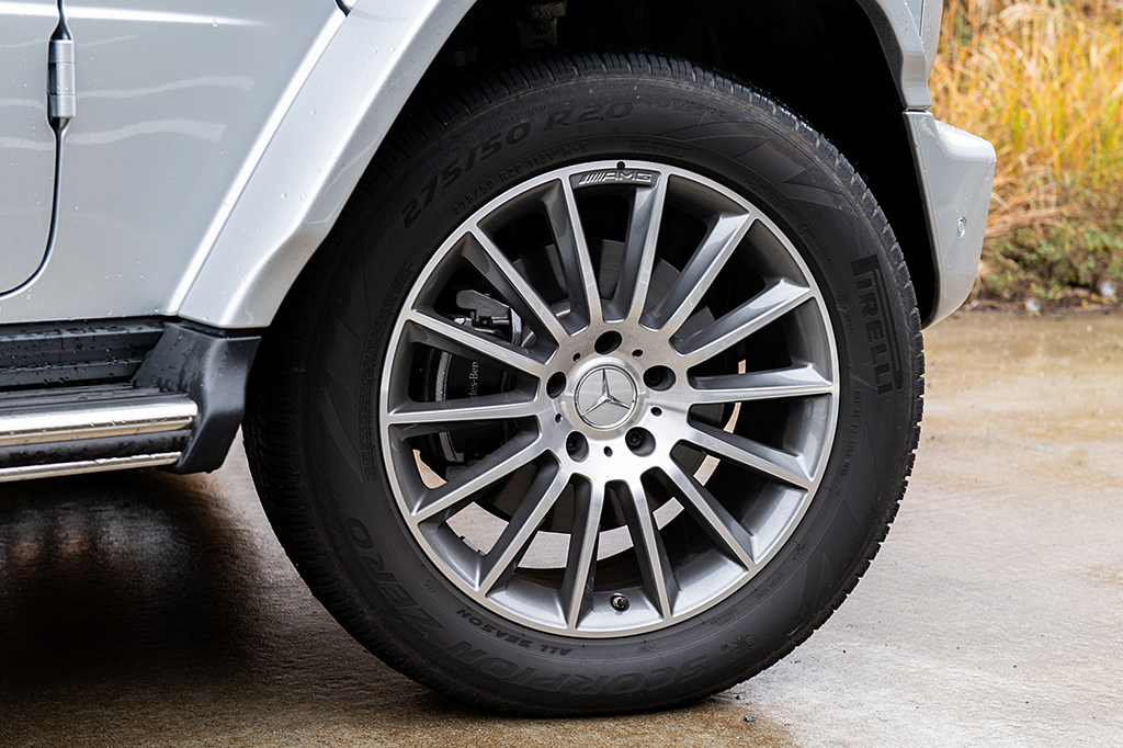 G350dのボディサイズは、全長4660mm、全幅1930mm、全高1975mmで、先代の最終モデルと比べ、全長で85mm、全幅で70mm、全高で5mm拡大されています。ちなみに、今回試乗した「AMGライン」装着車は、20インチのタイヤ&ホイール(標準仕様は18インチ)を履き、フェンダーもワイド化されており、全幅が55mm拡大された1985mmとなっています。