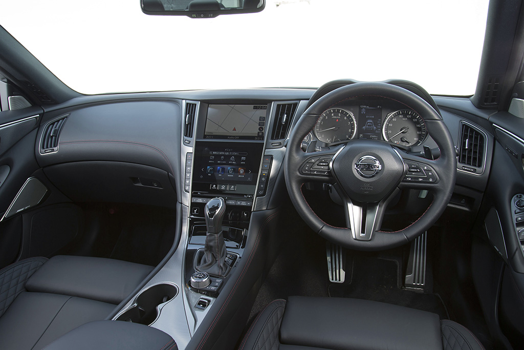 もちろん、タイヤからハンドルへのフィードバックがないと、接地感が分かりにくく運転していて不安になる。そのためスカイラインのDASでは、路面からタイヤに伝わってきた情報にフィルターをかけて取捨選択し、不要な情報をカットしつつ、必要な情報はしっかりとドライバーへ伝えるよう制御している。こうした制御は、2014年の初採用以降、度重なる改良を経ており、今では違和感のないレベルにまで磨き込まれている。