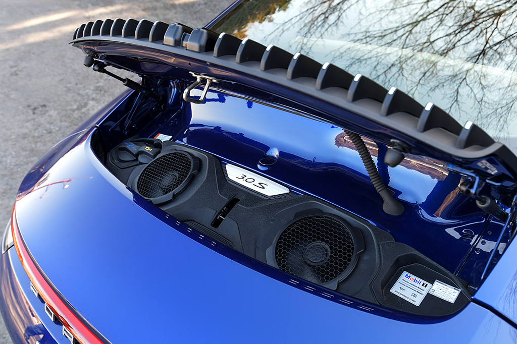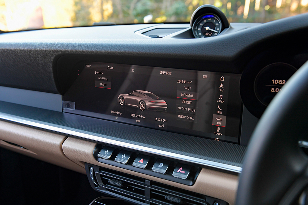 例えばセンターコンソールには、10.9インチのモニターが収まり、ドライバー正面に位置するメーター類も、タコメーターの左右はついに液晶パネル化されました。しかし、眼前に広がるメーターパネルは、間違うことなき911のそれ。ダッシュボード形状が空冷エンジン時代のモデルをモチーフとした意匠に改められたのも、そうした印象を強くしているようです。