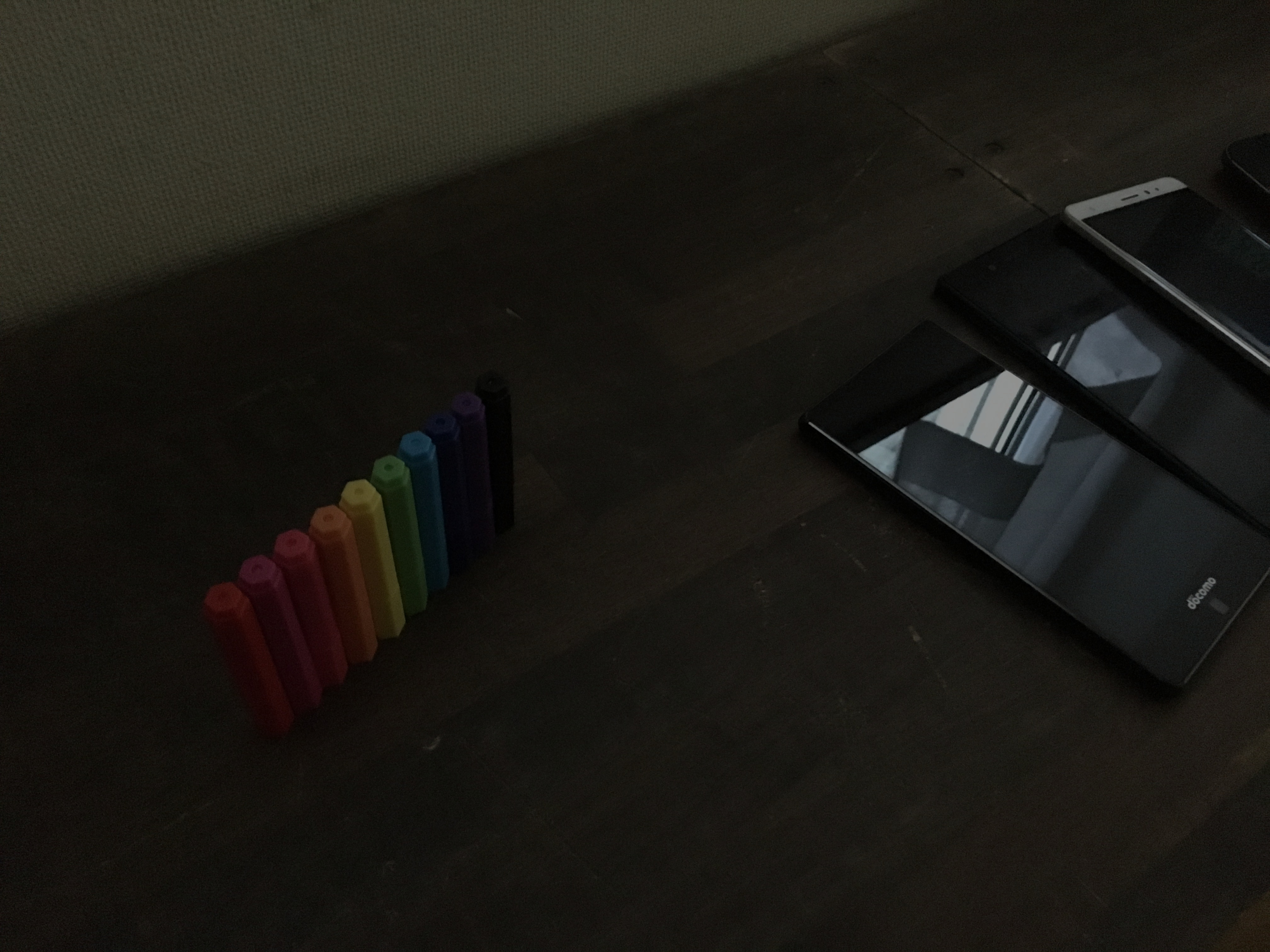 薄暗い廊下の棚の上に被写体を設置し、およそ20cmの距離からスマホのカメラで撮影しました。各機種に搭載されている暗所撮影関連の機能は全てオンにし、暗所撮影機能が搭載されていない機種はISO感度や露光、シャッタースピードなどを調整し、明るく綺麗に撮れた写真を検証結果としました。なお、iPhone 6sのみ同様の機能が無いので、撮影後の写真を「編集」で調整しています。