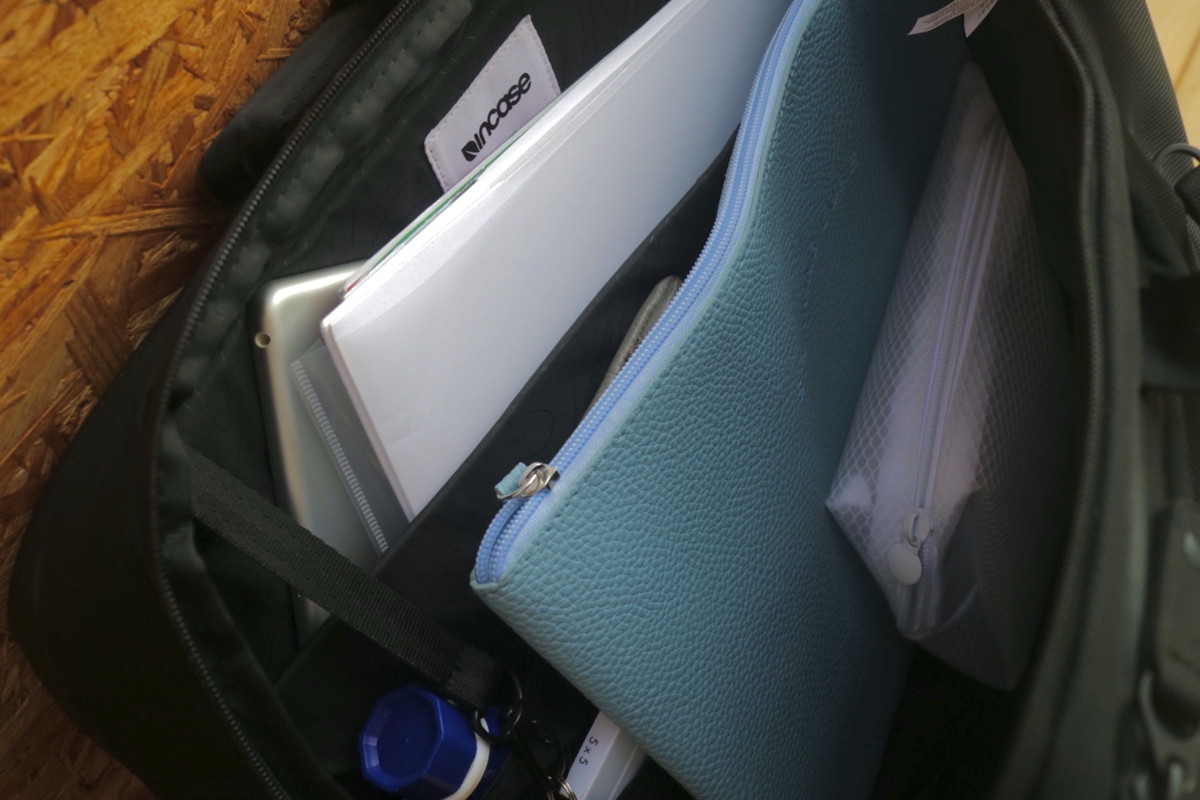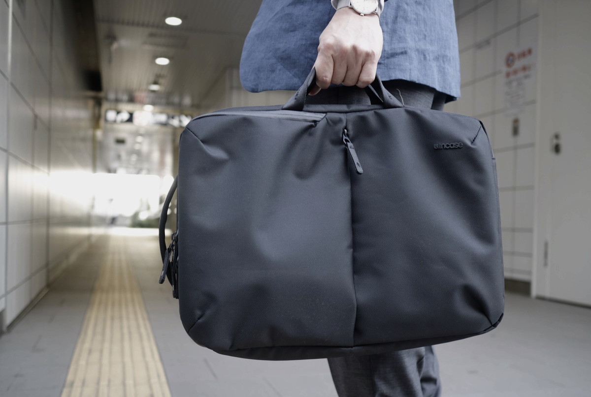 一度は使ってみたいと思っていたインケースのバッグ。ノートパソコンや周辺機器を常に持ち歩きたい身としては、ジャケットを着る機会が少なくても欲しくなるバッグでした。「2-Way Convertible Brief」は、薄マチな上にメインもフロントも大容量でON/OFF使い分けやすい作りという点でも、お勧めできるバッグです。