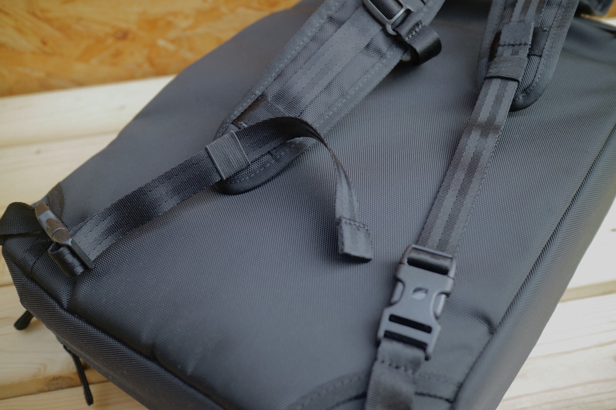 ▲背負ったまま調整できる上に、余ったストラップを留めるゴムバンドが付いている。見た目的に嬉しいディテール