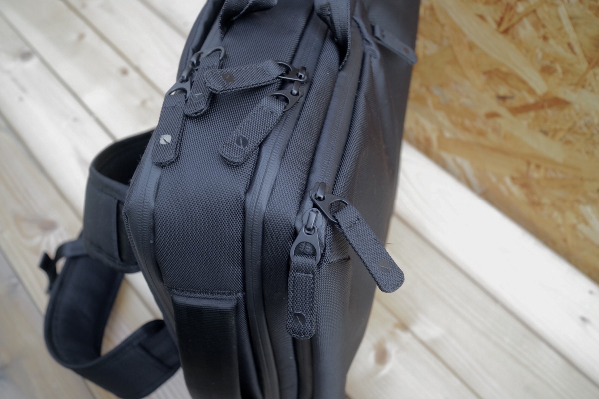 ▲3カ所とも止水のダブルファスナー。PCの大敵である水からも保護してくれる