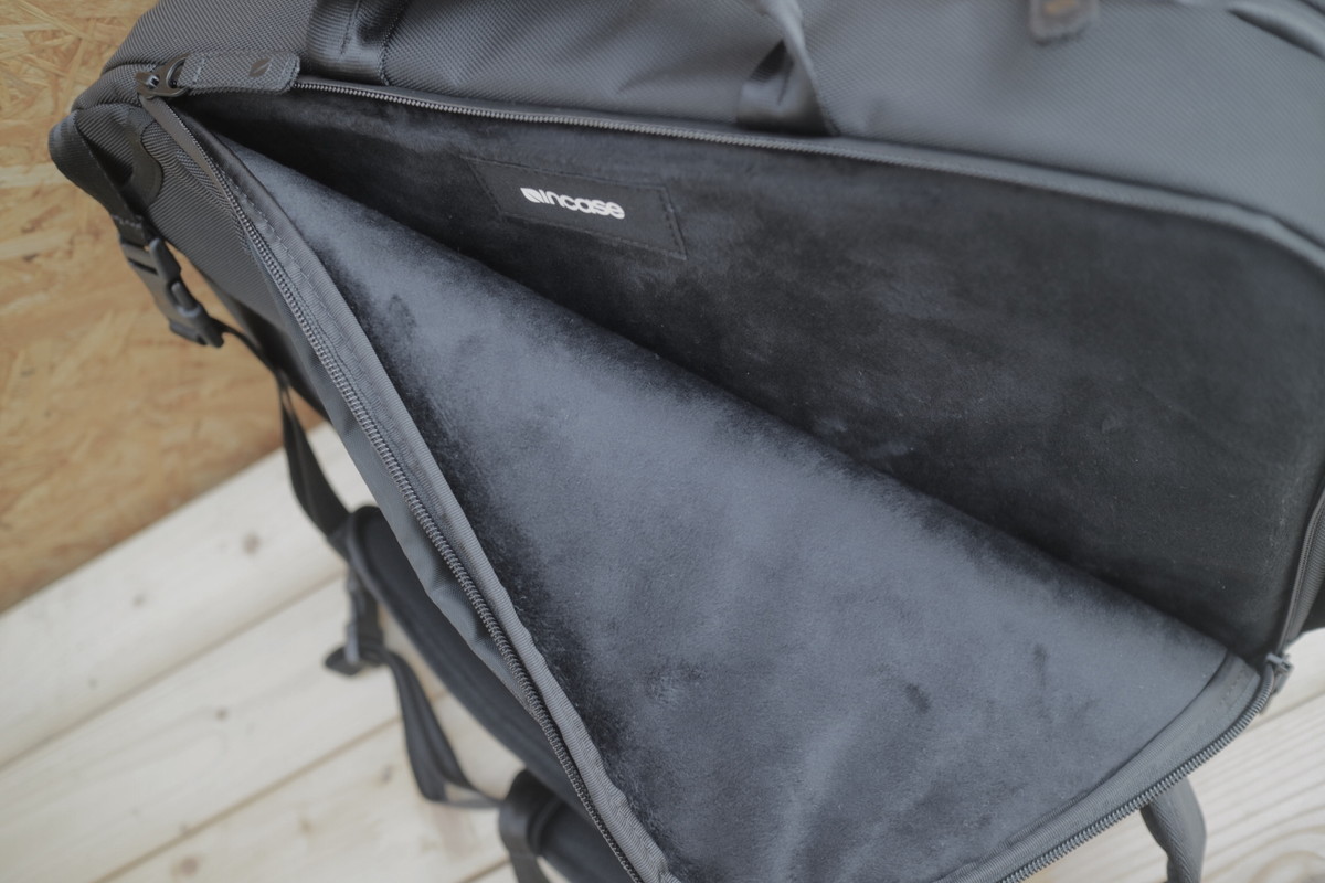 ▲裸で入れても安心な起毛素材を使ったPCスペースはインケースならでは
