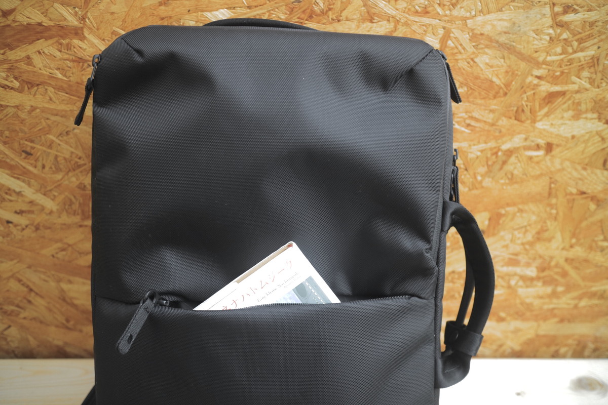 ▲フロントポケットの下にも単行本が入るサイズのスペースが