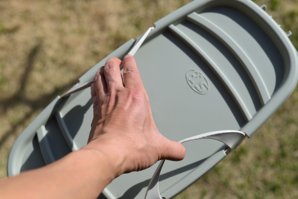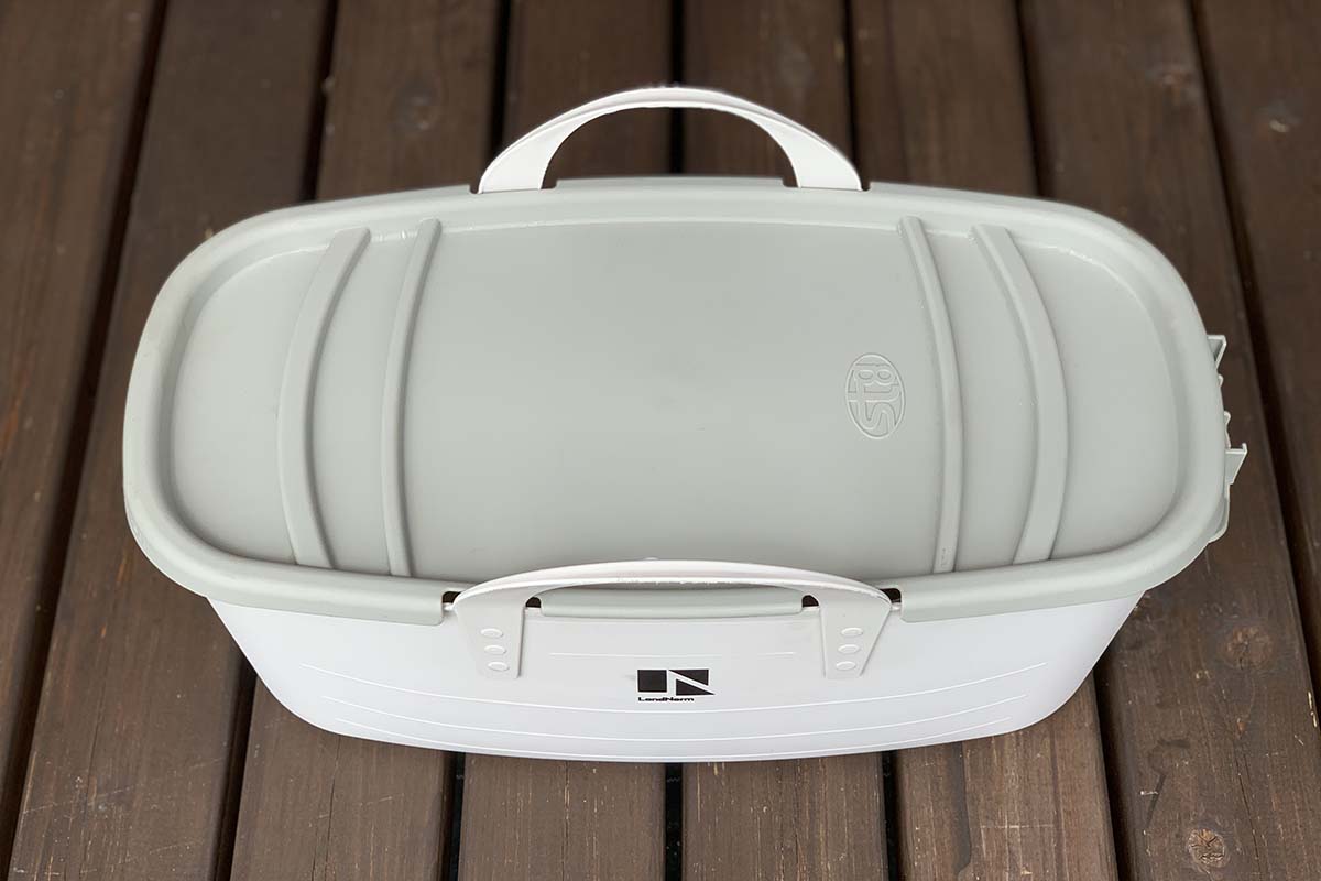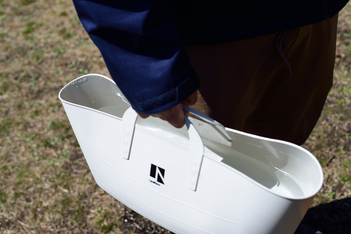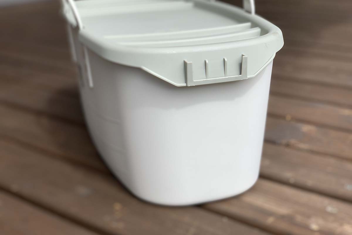 軽量でハンドル付きだから持ち運びやすく、本体素材は水にも汚れにも強いポリエチレン製(フタはポリプロピレン製)で、しかも自立するから室内外で活躍。アウトドアと自宅で使ってみましたが、さまざまなシチュエーションで重宝しました。