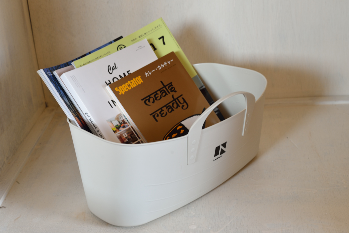 本体は柔らかくしなやかなのに腰が強いため、マガジンラックとしても重宝します。雑誌を横にすれば『GoodsPress』を20冊くらい収納できますが、縦にすると重さで倒れてしまうので、マガジンラックとして使うなら5冊くらいがちょうどいいかも。