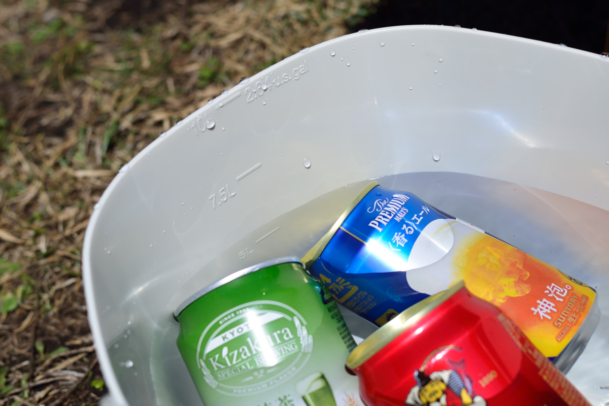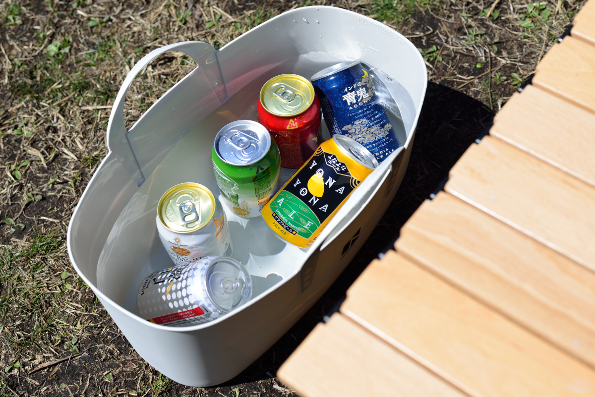 クーラーボックスではないので保温性はありませんが、氷水を入れればウォータークーラーとして活用可能。ドリンクを冷やす時はもちろん、野菜をシャキッとさせておく際も重宝します。