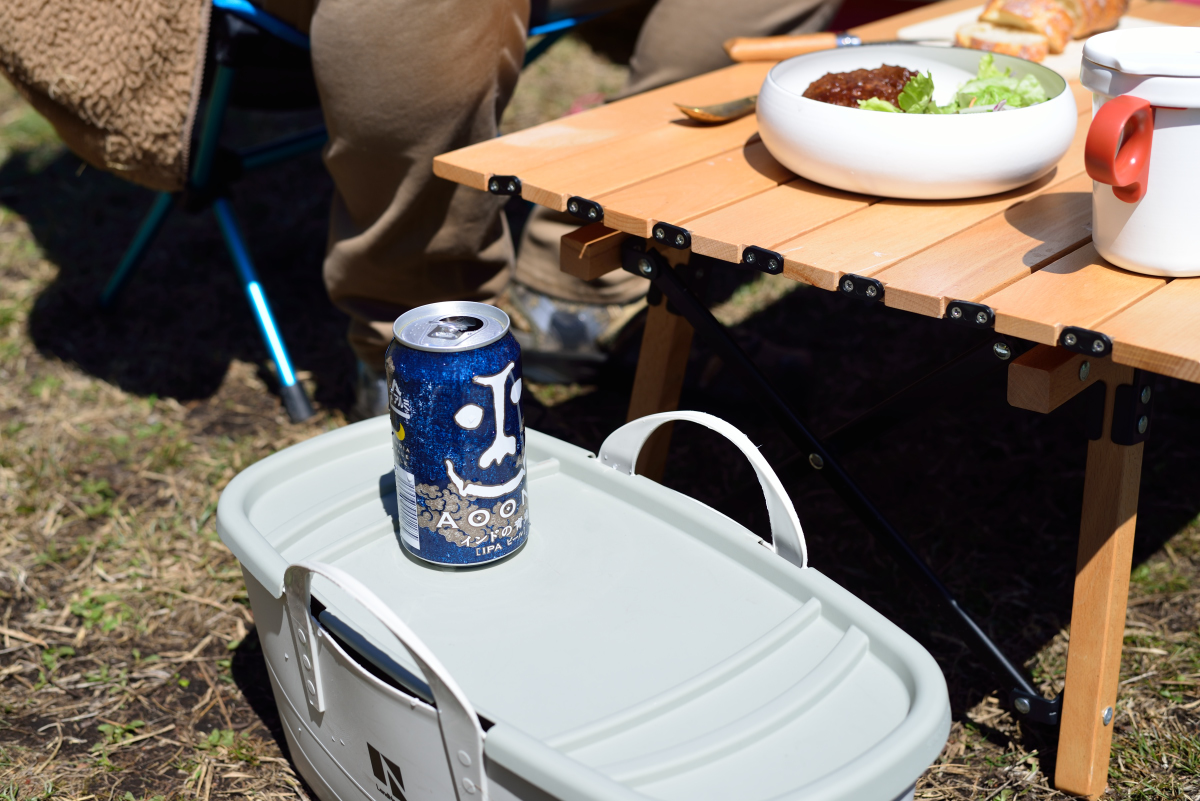 ちなみにビールを縦に入れれば8本は余裕、10本だとバスケットが変形しますが、フタをしなければ問題なく入ります。高さ的には350ml缶であればフタが閉まりますが、500ml缶だと微妙に閉まらないので、持ち運びの際は注意が必要です。