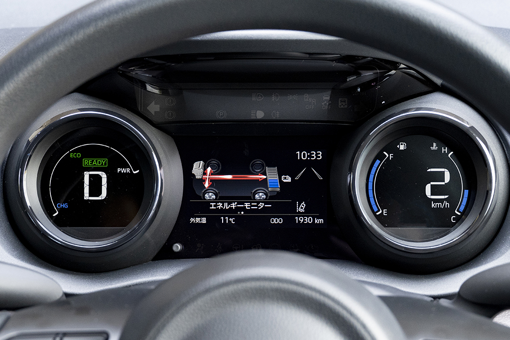 その一方、一度のブレーキで回収できるエネルギー量は従来の2倍に増え、エネルギーロスを抑制。また、エンジンを止め、モーターのみで走行する“EVドライブモード”の速度上限が、従来は70km/hだったのに対し、ヤリスでは130km/hまで対応した結果、ガソリン消費量をより削減できるようになったのはいうまでもない。つまり新しいハイブリッドシステムは、日常領域はもちろんのこと、高速走行領域でも燃費向上を達成しているのである。