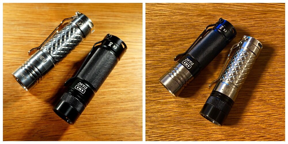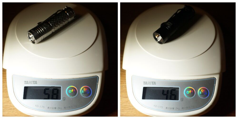 全長はほぼ同じ。デザインが異なりますがヘッドとボディのネジのピッチなどは同じです。つまり、ヘッドの換装も可能です。少し雰囲気が変わるのも面白いですよね。例えば、チタンモデルは明るさ重視のXM-L2にして、アルミモデルは日亜の高演色にする、など特性の異なるLEDを選び、ヘッドを付け替えて使ってみるのも面白いかもしれません。
