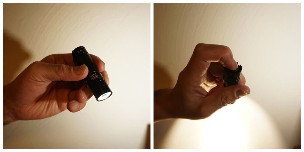 ヘッドを絞めこむとターボモードとストロボ点滅だけ使えるタクティカル、ヘッドを少し緩めて多くのモードが使えるジェネラル(一般)の2パターンがあります。最近はあまり他社では見かけない調光システムですが、以前は人気のモノでした。ちょっと懐かしくて嬉しくなってしまいました。常時点灯で使用するには使いやすいスイッチだと思います。