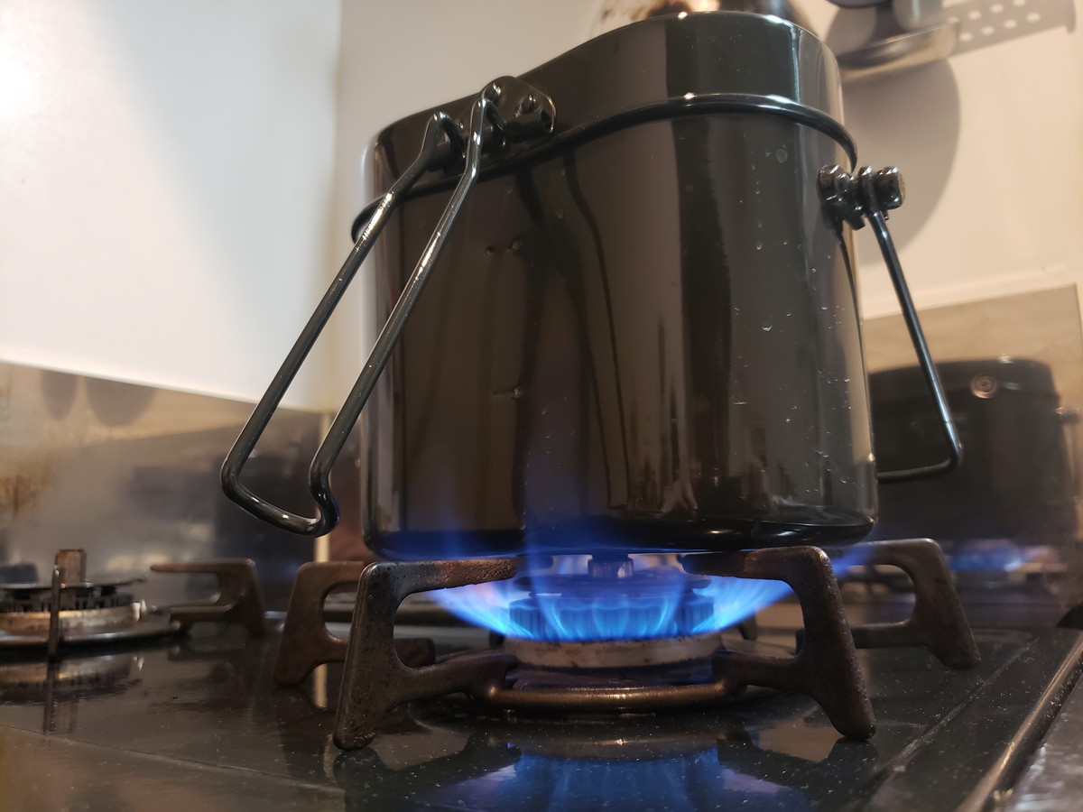 ちなみに飯ごうは、元を辿るとヨーロッパで生まれた調理器具とのこと。それが日本に伝わり、炊飯用としても使われるようになったそう。そして日本はお米の国。なので日本製のこの飯ごうは、中子で米の量を計れるようにしてあるのではないか、と勝手に推測してます。