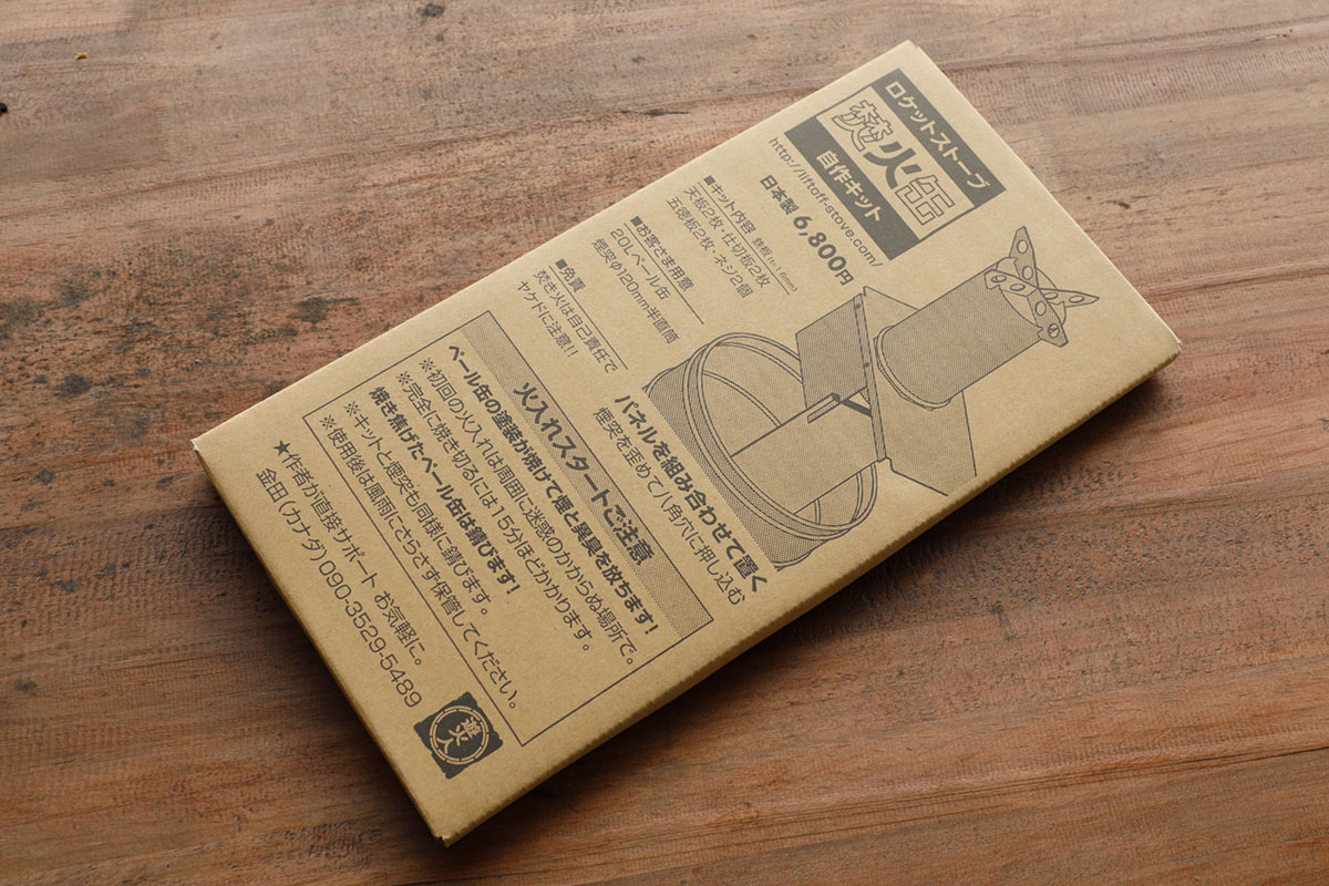 ちなみに自分でペール缶と煙突を用意するシンプルな「焚火缶」キット(5800円※購入した通販サイトでは送料込みで6800円)のほかに、煙突がセットになったセット(7800円)と、ペール缶+煙突のセット(8800円)もあります。