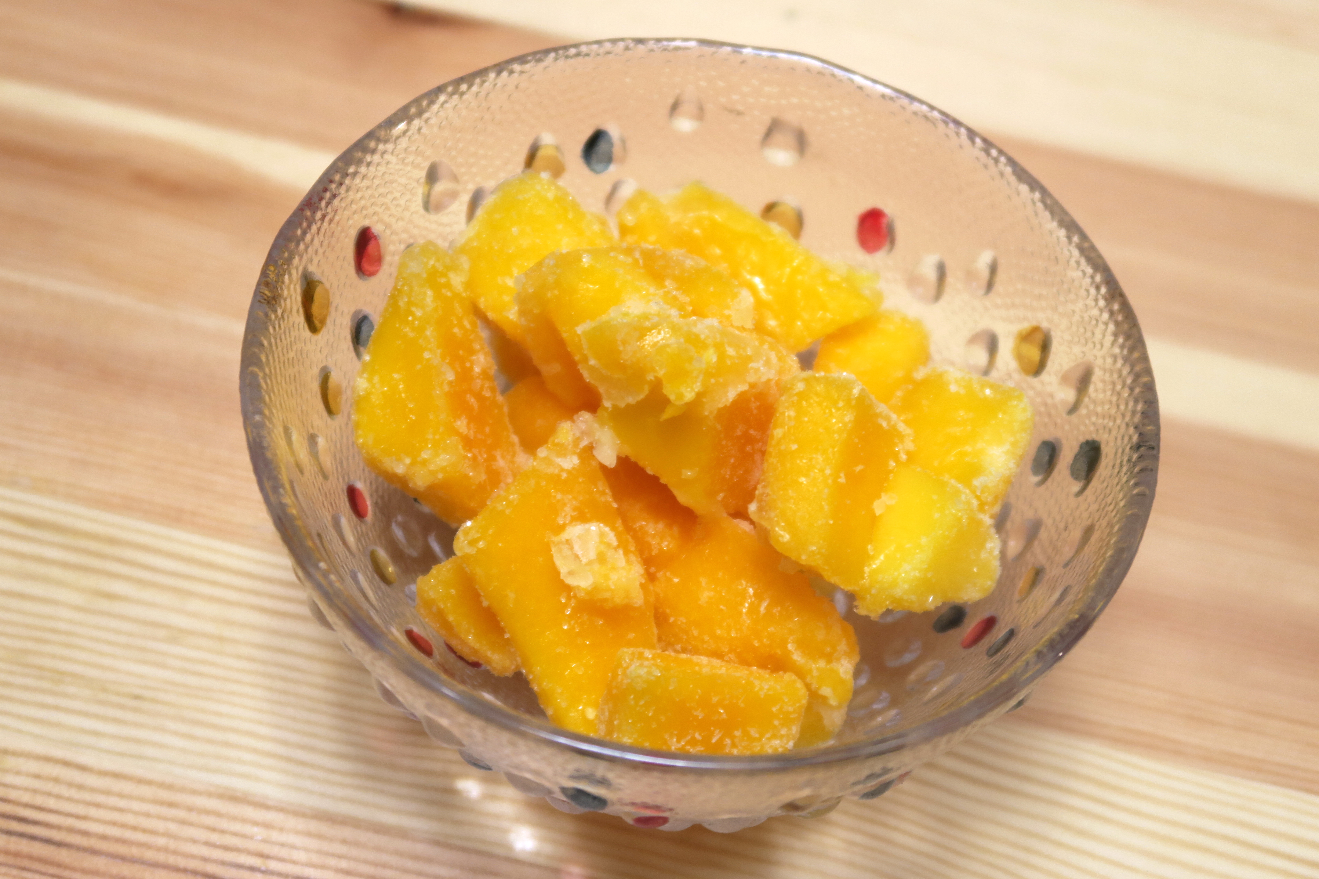今回私が食べたトップバリュのマンゴーは少し甘みが薄いような気したのですが、スムージなどに使うならこれで十分。マンゴー以外にブルーベリーやいちごなどもあるので、お気に入りのフルーツをストックしておくといいかも。