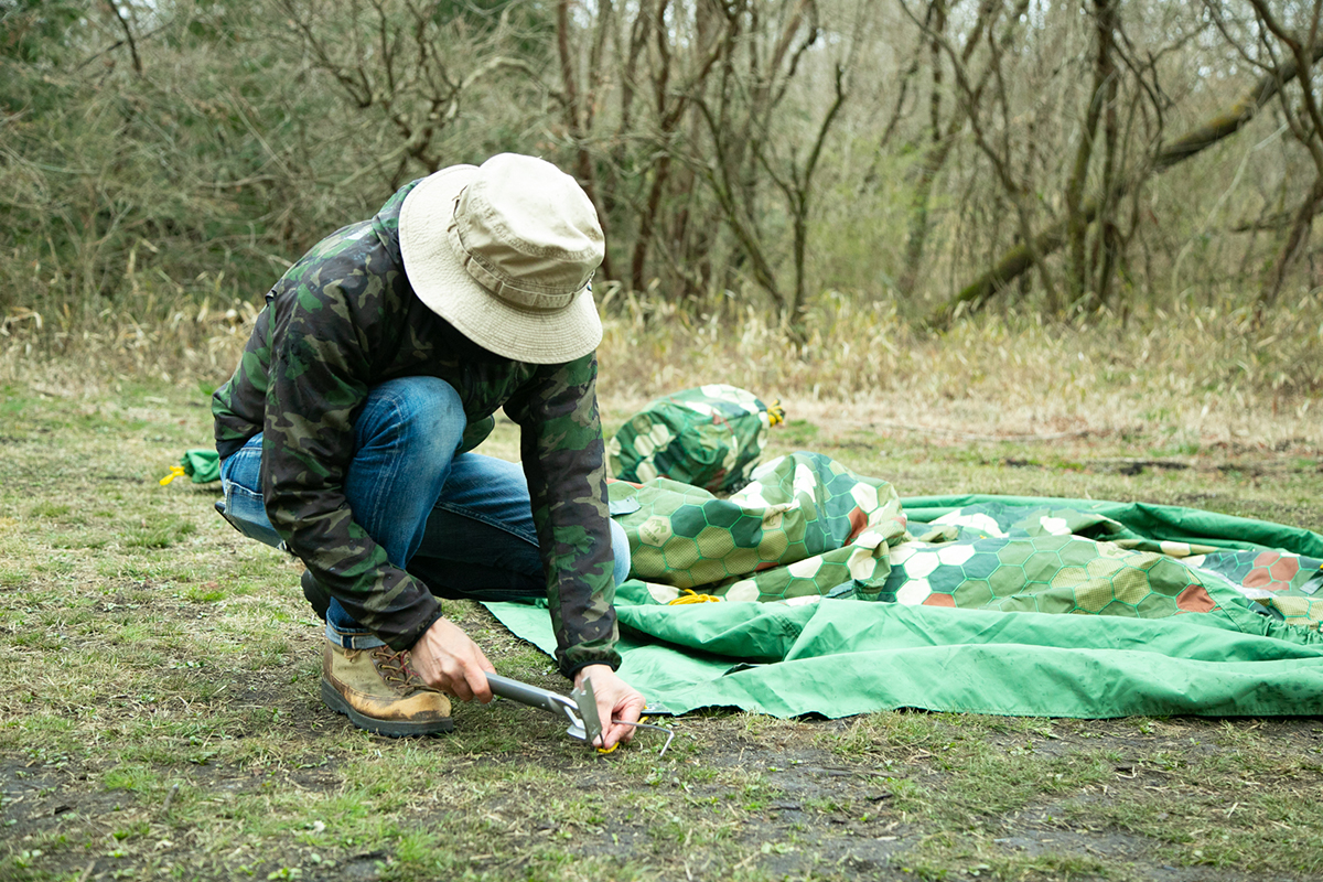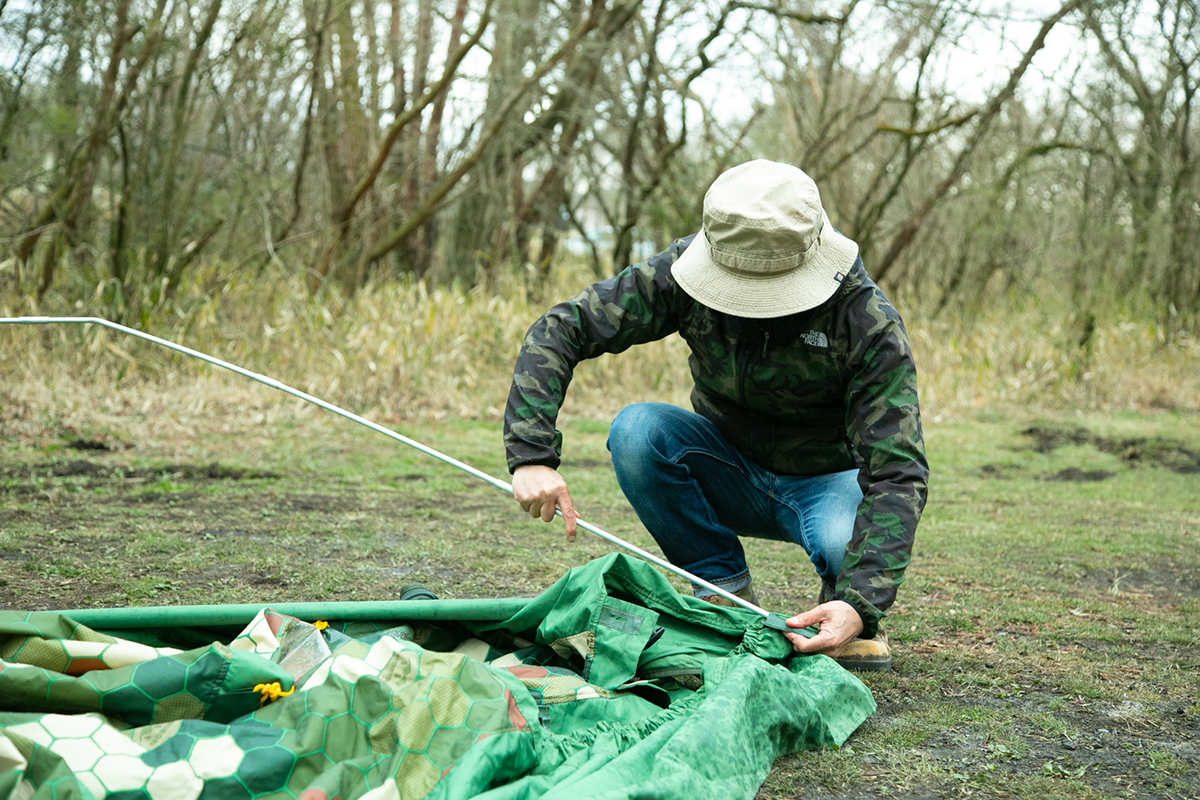 1つ目は、ペグ。付属のペグは、シンプルなL字型のピンペグなので、河原で張る場合は、硬い地面に対応できるペグを別途用意した方がいいかもしれません。
