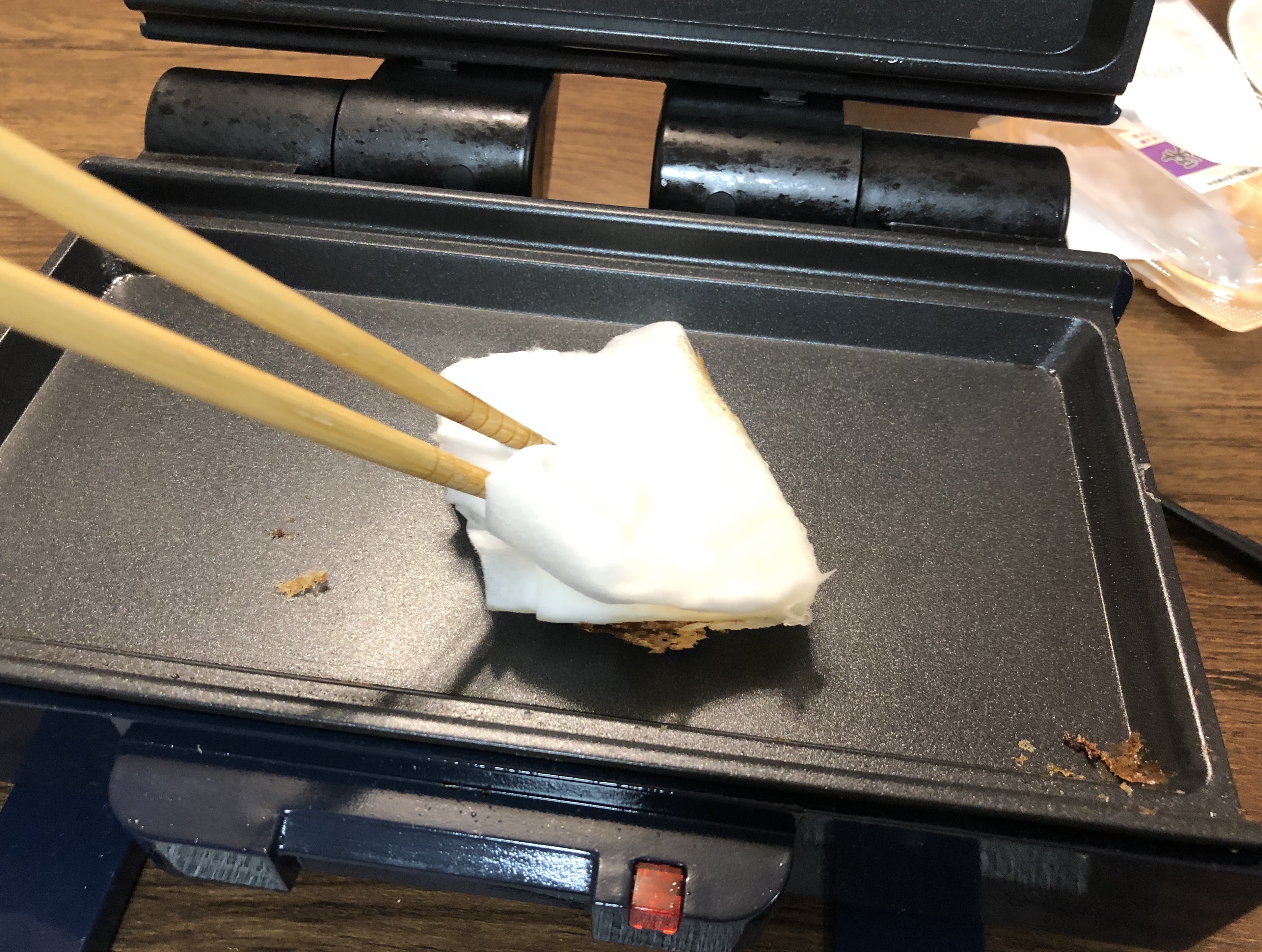 ▲ちなみにデザートにロッテの「雪見だいぶく」も焼いてみたのですが、秒で大変なことに……(一瞬で周りのもちが溶けてしまった)
