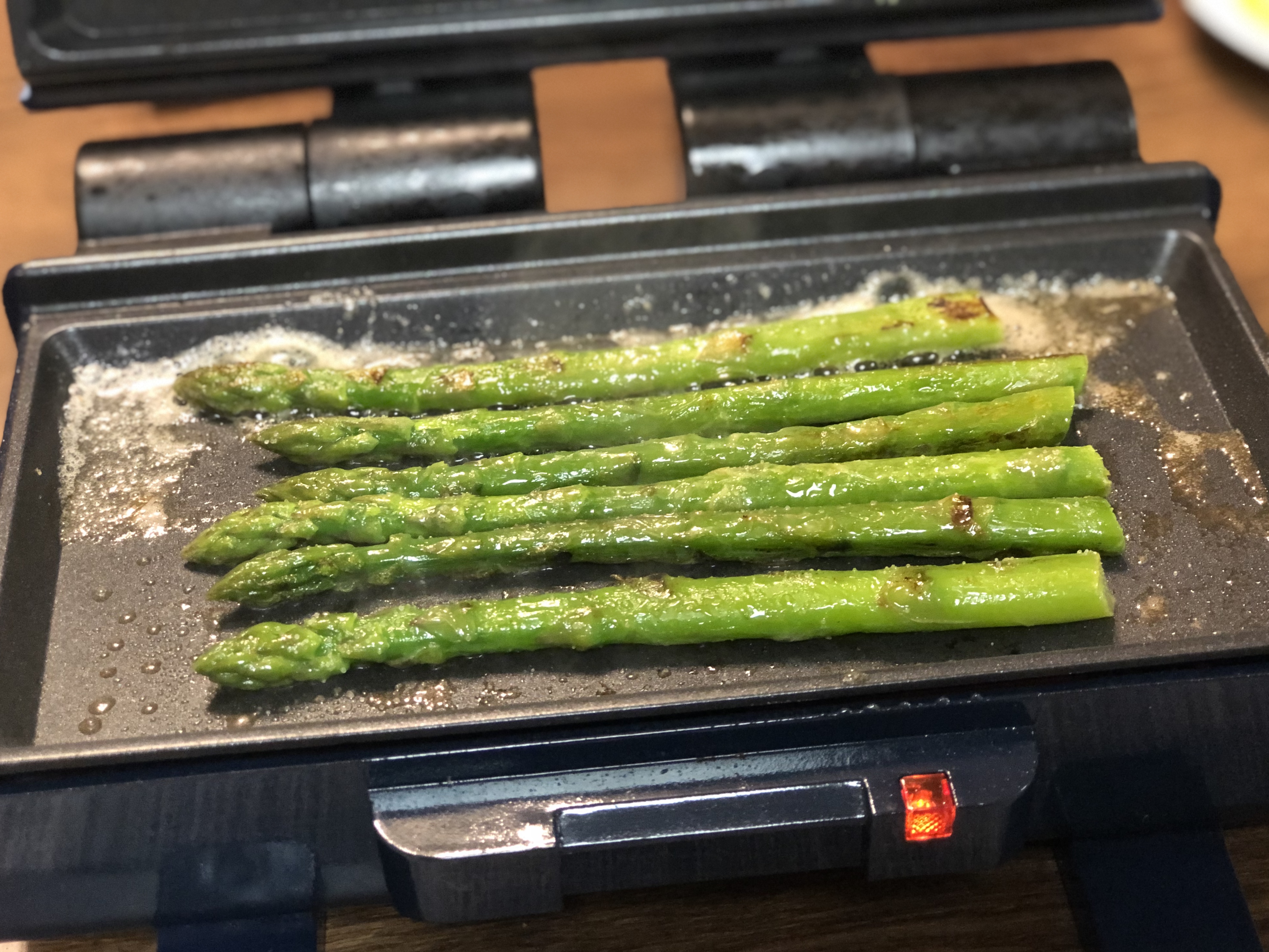 ▲コストコで購入した冷凍アスパラガスをバターソテーに。焦げ目がついたら塩コショウしていただきました。失敗しようのないおいしさ