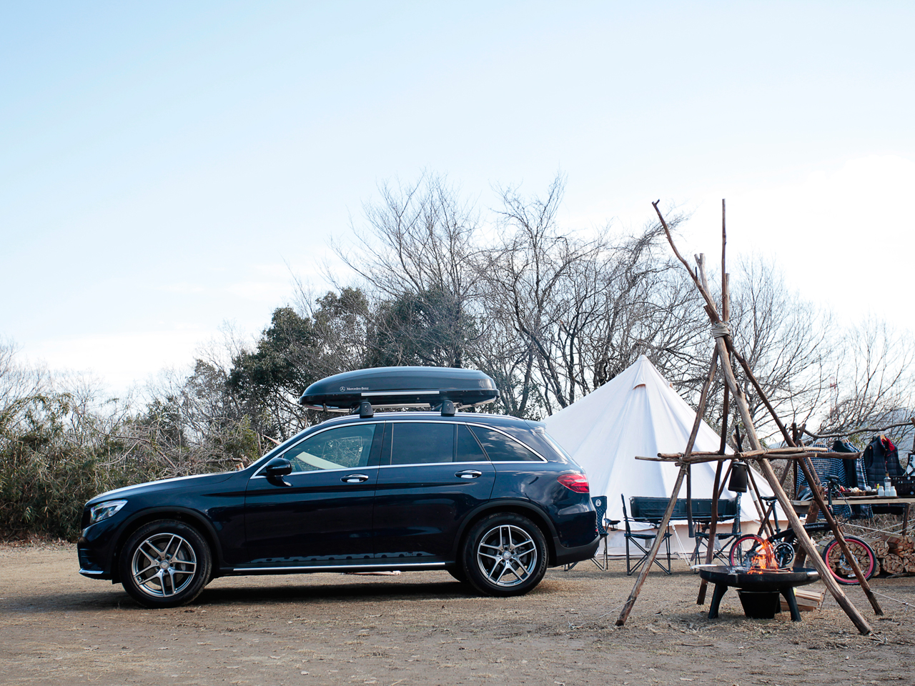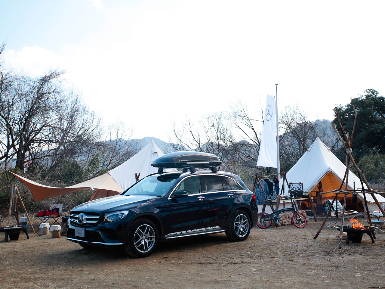 GLCの試乗会場には、立派なテントが建ち、焚き火が起こされていました。キャンプの豪華版(!?)“グランピング"を表現していたのです。
