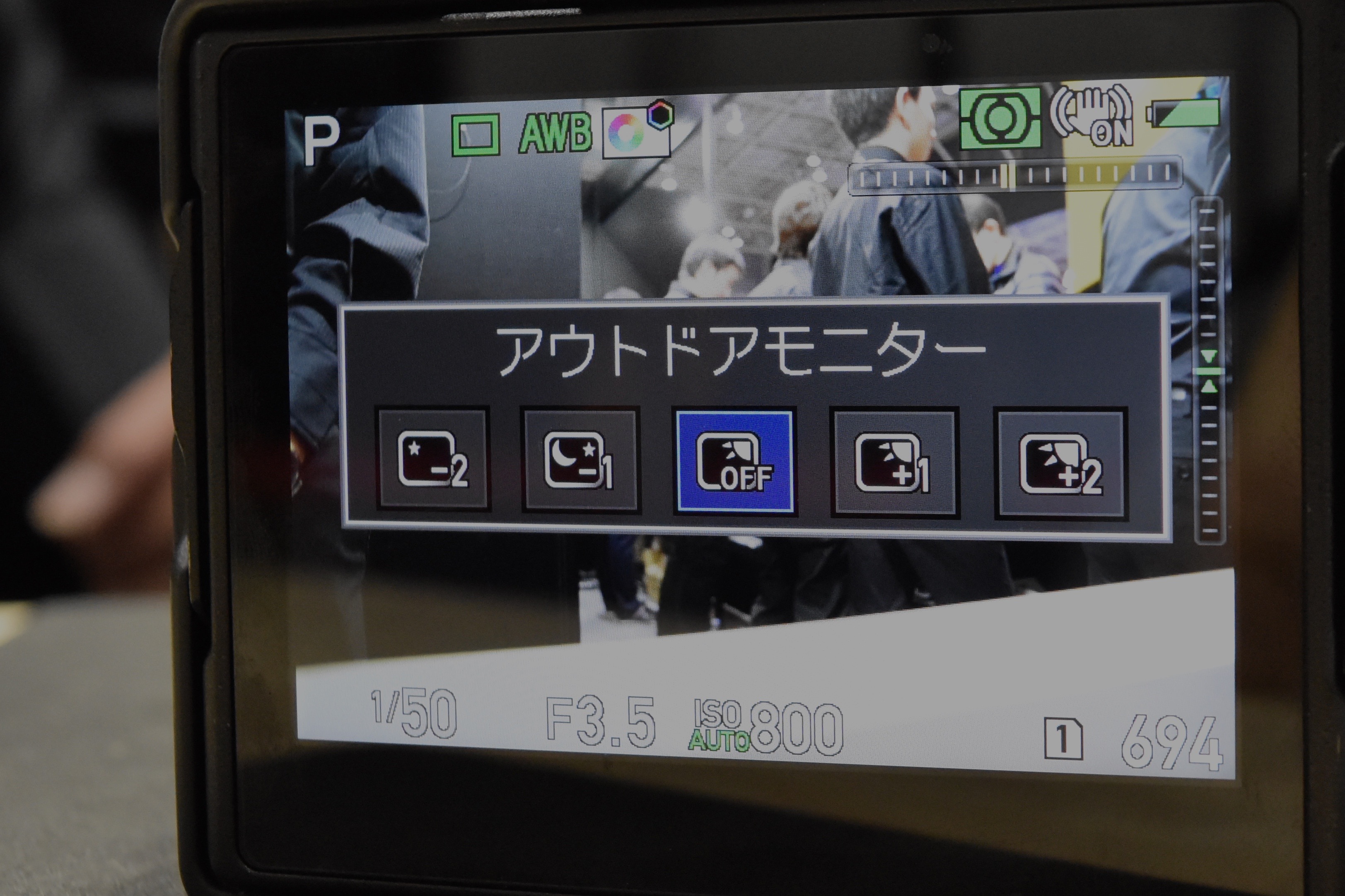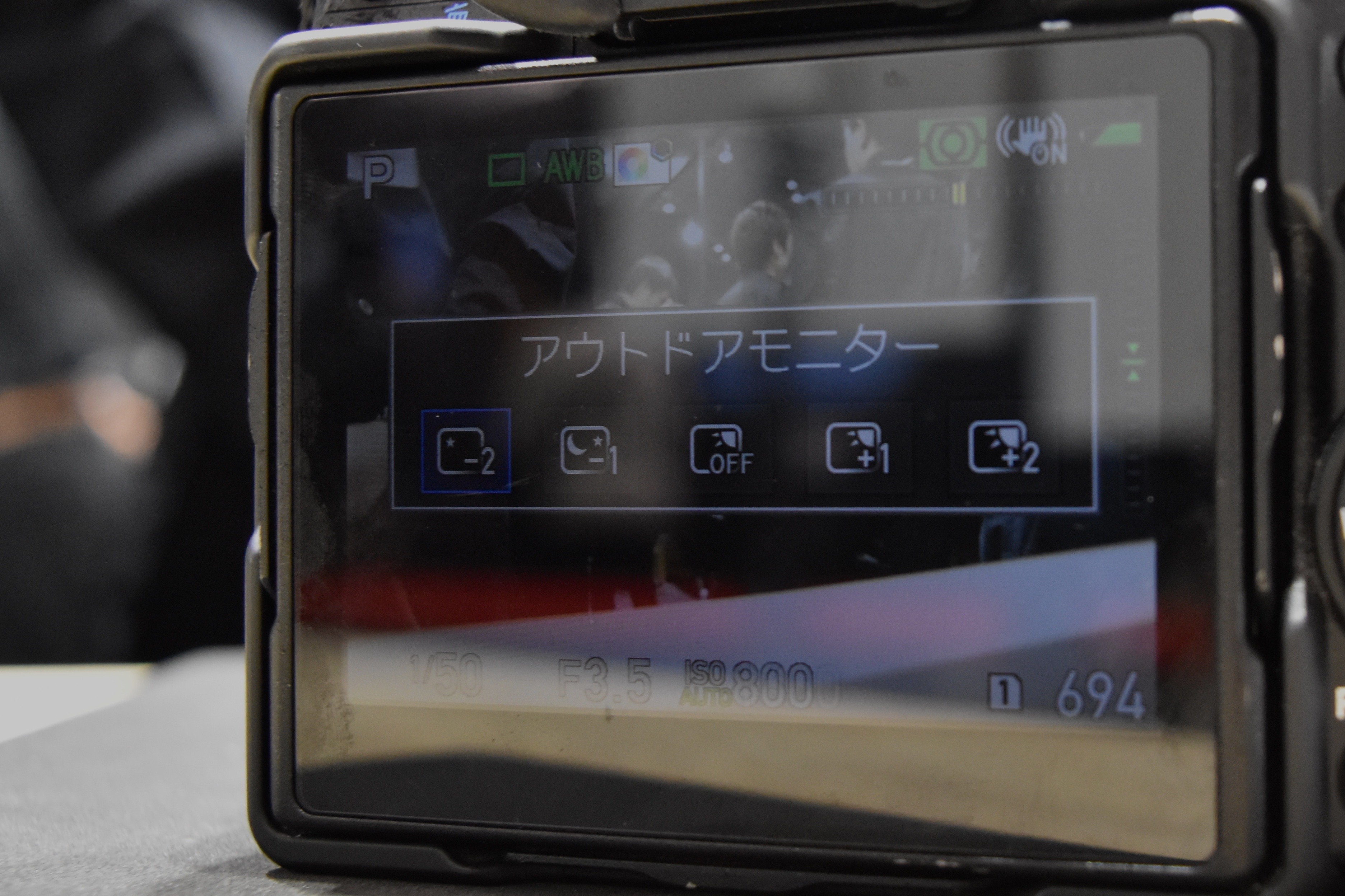 モニターの明るさが5段階でスピーディに変えられるボタンも追加されました。これも屋外での撮影に助かる機能。