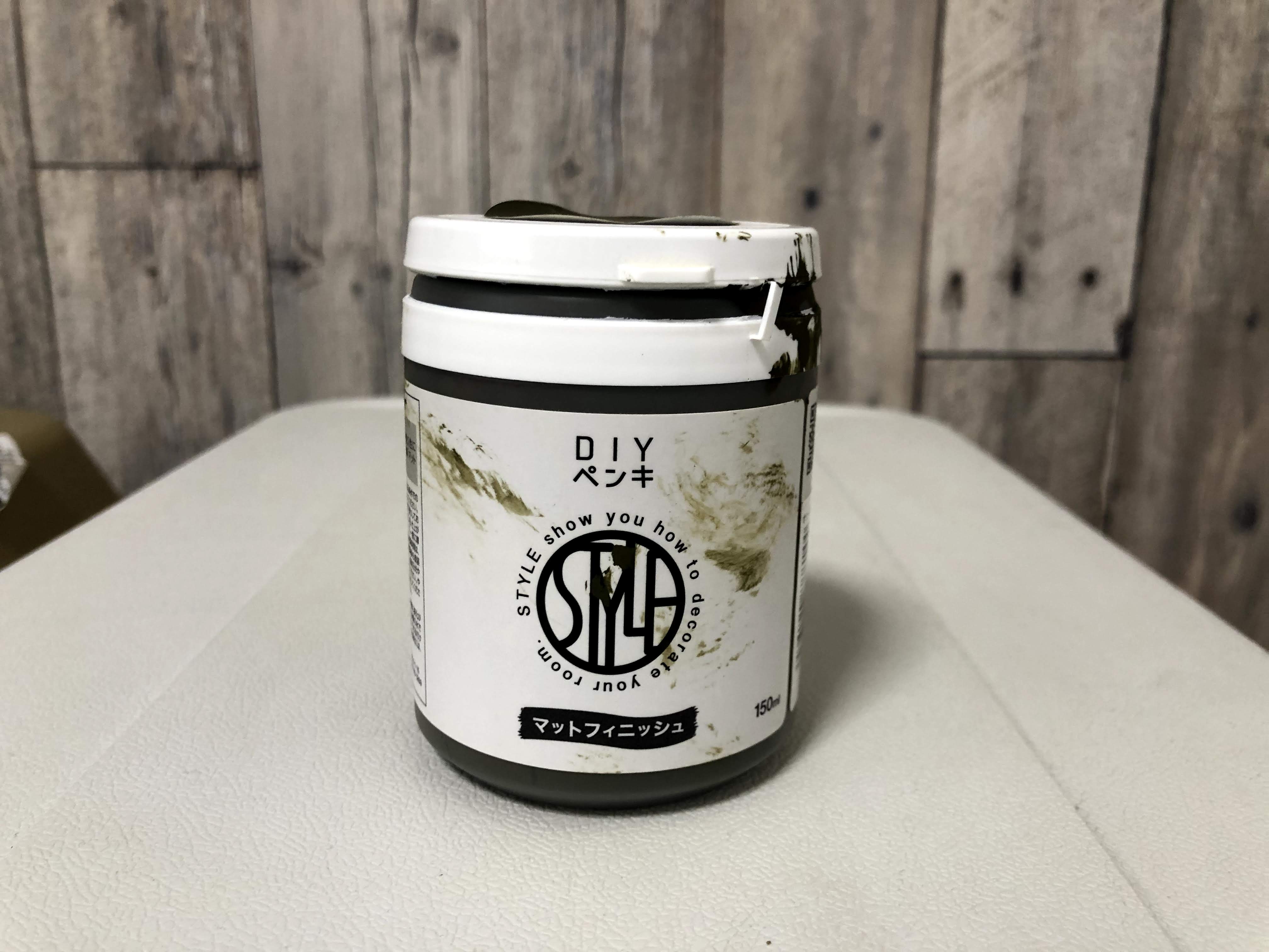 とはいえあまりに手軽なので、一工夫するため塗装をやってみることに。やっぱりここでもカーキカラーにしたくなりオリーブドラブのペンキで塗り塗り。刷毛(はけ)が一本あれば雑に塗ってもシャビー調というか、ミリタリーライクなカッコよさが得られます。