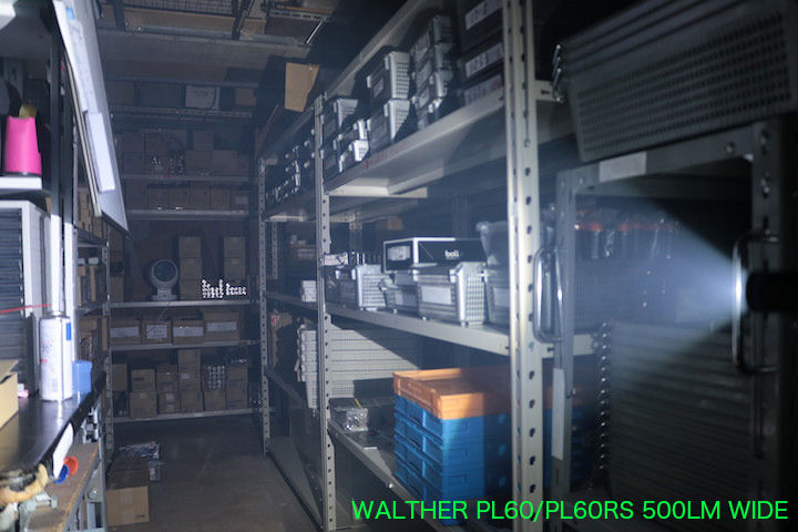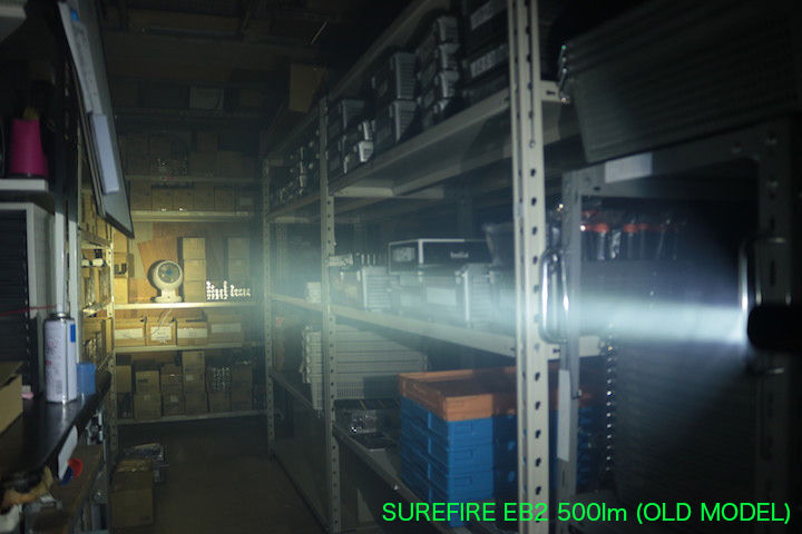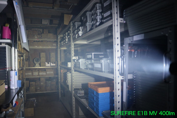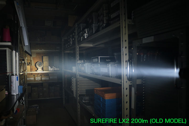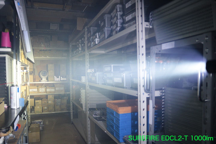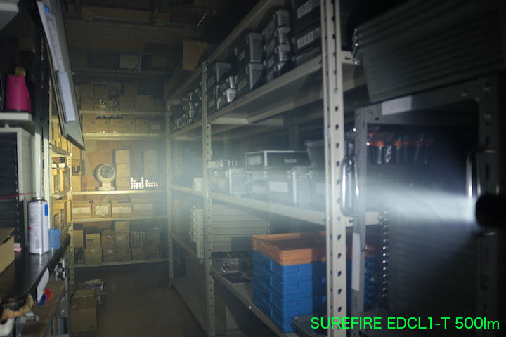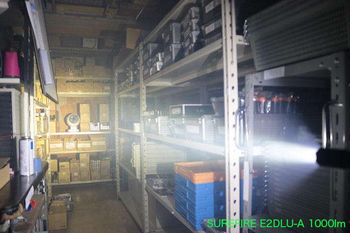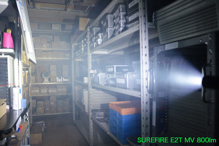 まずはマックスビジョンの2機種。単純にフラットなレンズ式のワイド(PL60 WIDE)と異なり、奥の壁面まで均一な明るさが特徴的です。5~10mの至近距離では最も使いやすい配光のひとつかと思います。タクティカルを強調するSUREFIREの意図とは裏腹に、日常使いに良さそう。