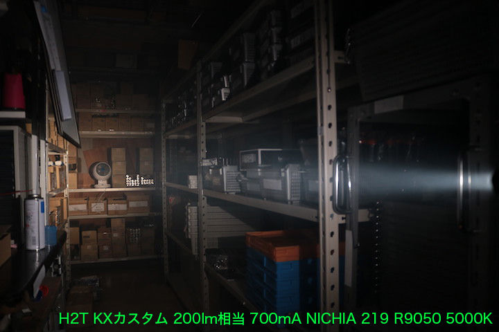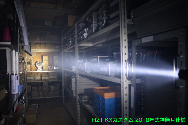 そして昨年製作したKXヘッドカスタム神無月仕様。500lm相当と無理の少ない設定でよく飛びますが、E2DLU-4Sと比較すると流石に控えめです。