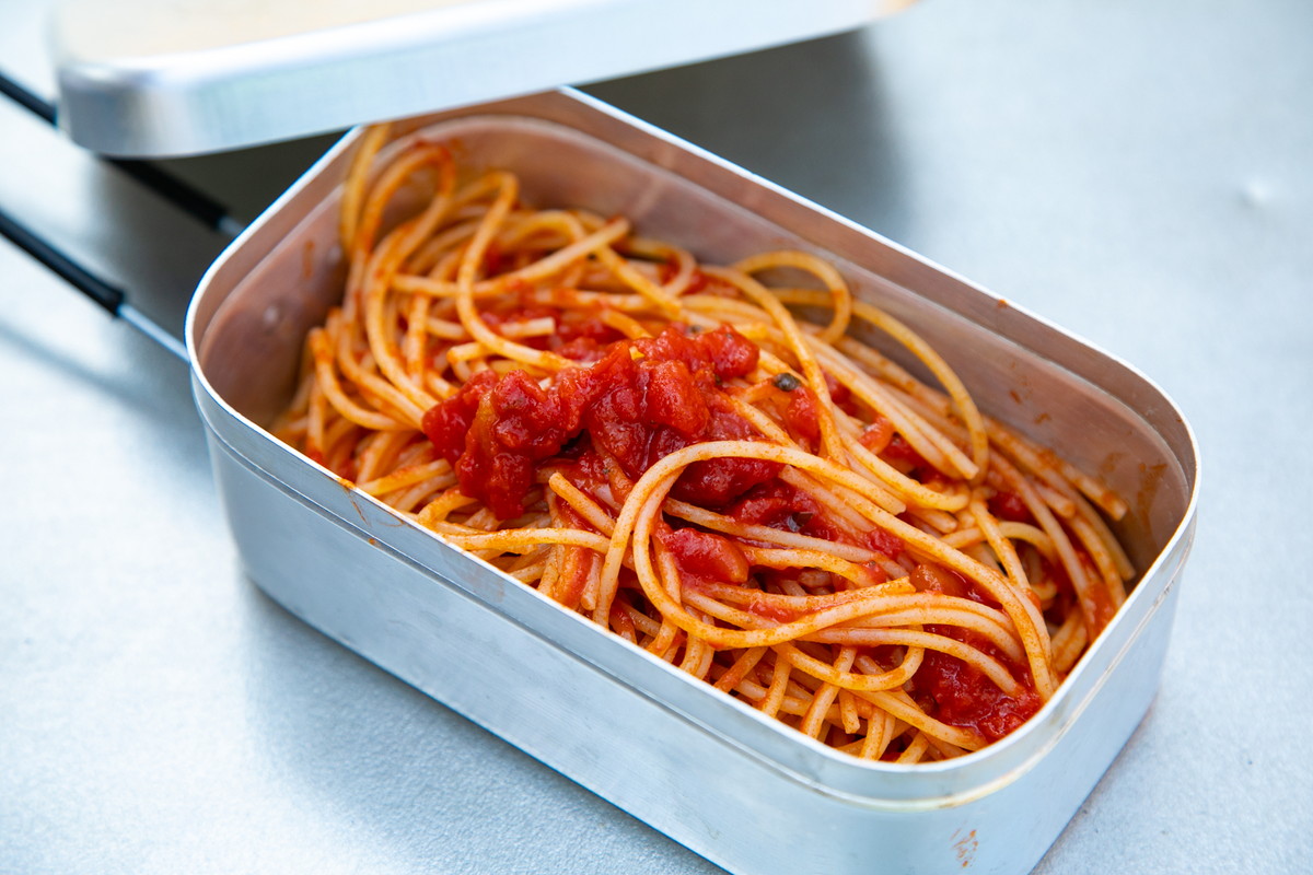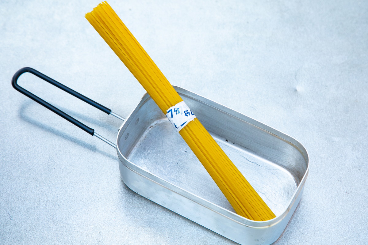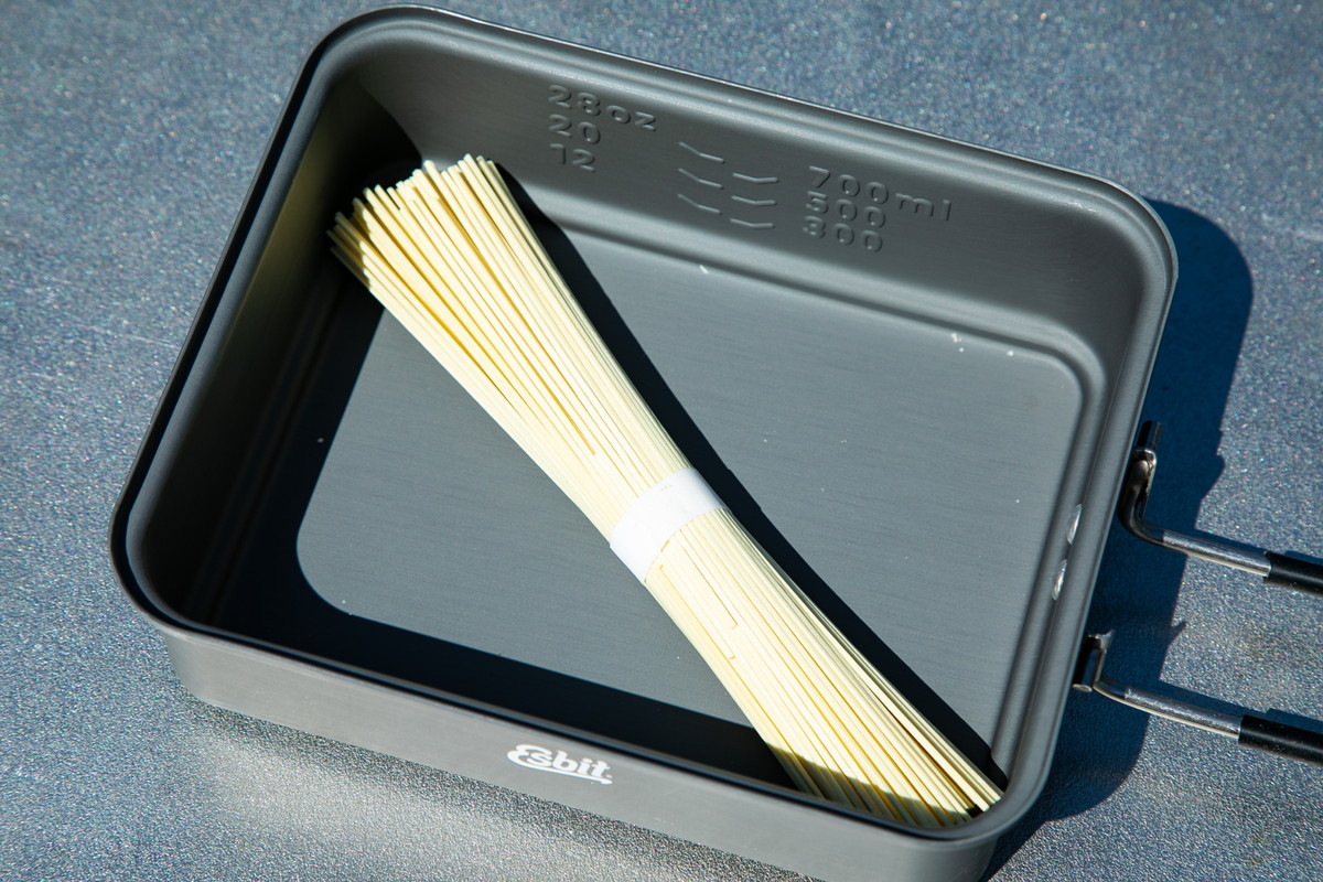 パスタは約半分の長さに折れば入ります。そして、トランギアほかアルコールバーナーを納めるのにもぴったり。
