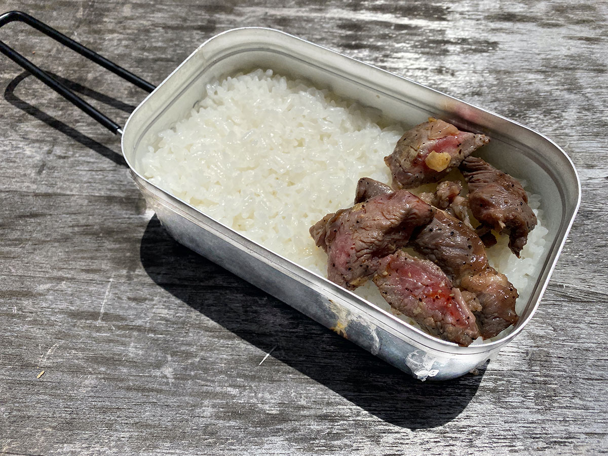 そしてメスティンの真骨頂は炊飯です。沸騰したらごく弱火で12分。汁は垂れますが、ふたがしっかりかみ合っているのでふたが大きく浮き上がることはありません。