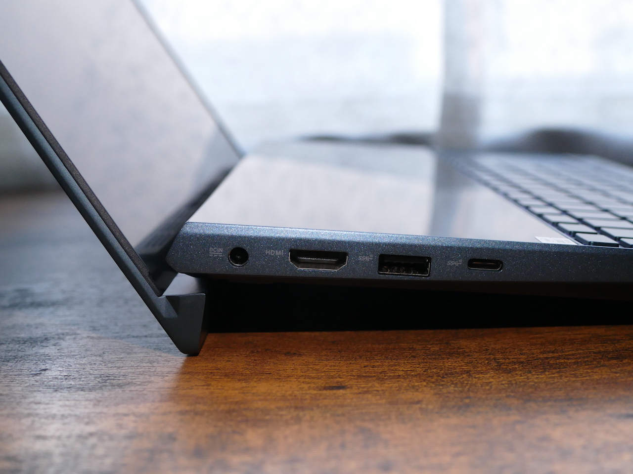 ▲左側面のインターフェースは、左から順に、電源ジャック、HDMI、USB 3.1(Type-A/Gen2)、USB 3.1(Type-C/Gen2)。