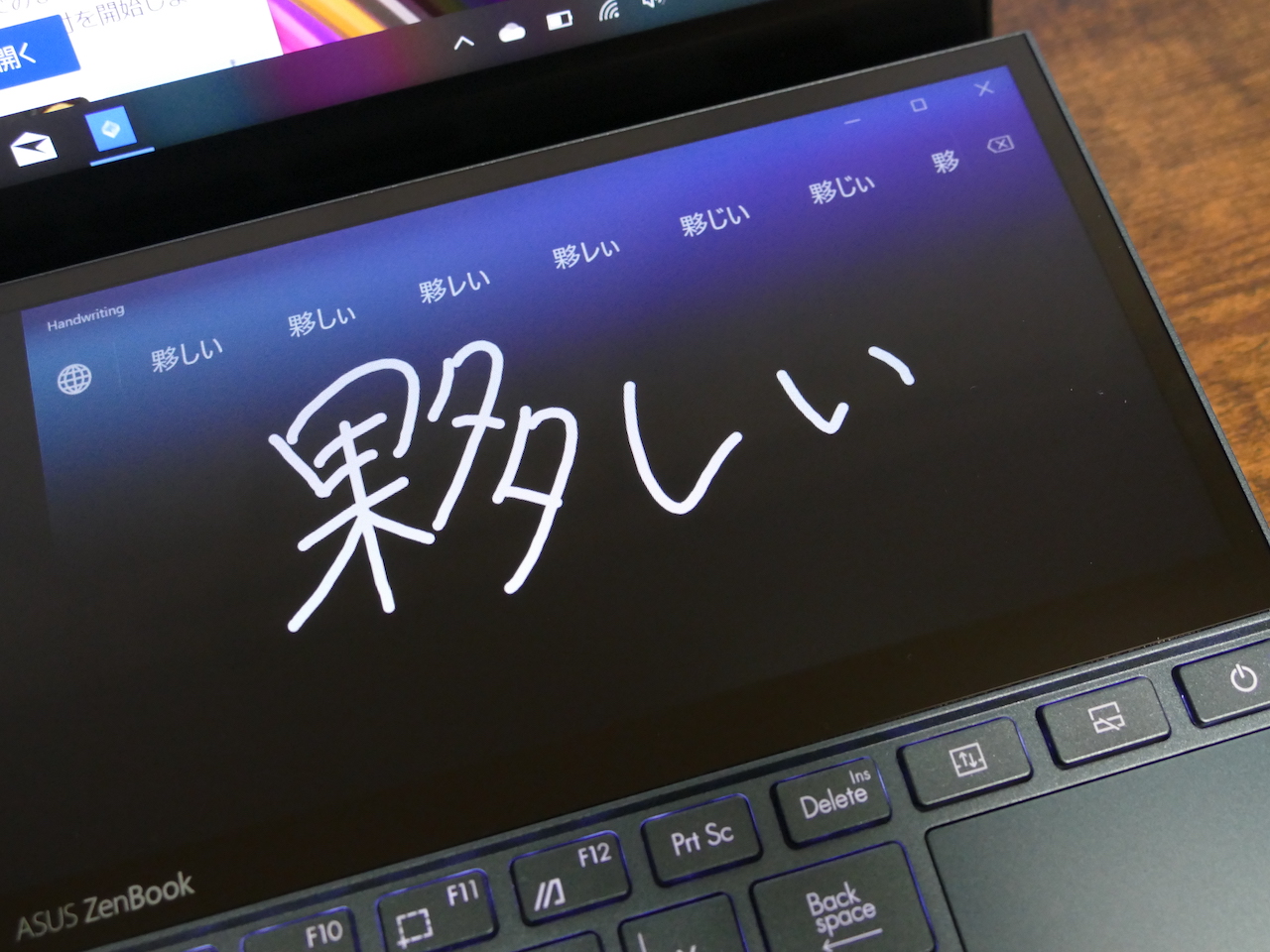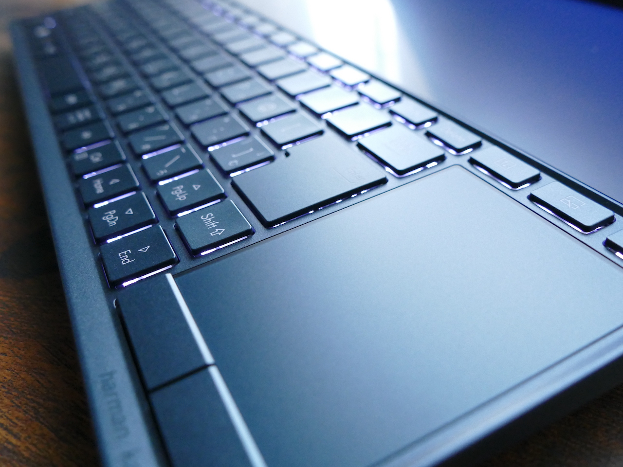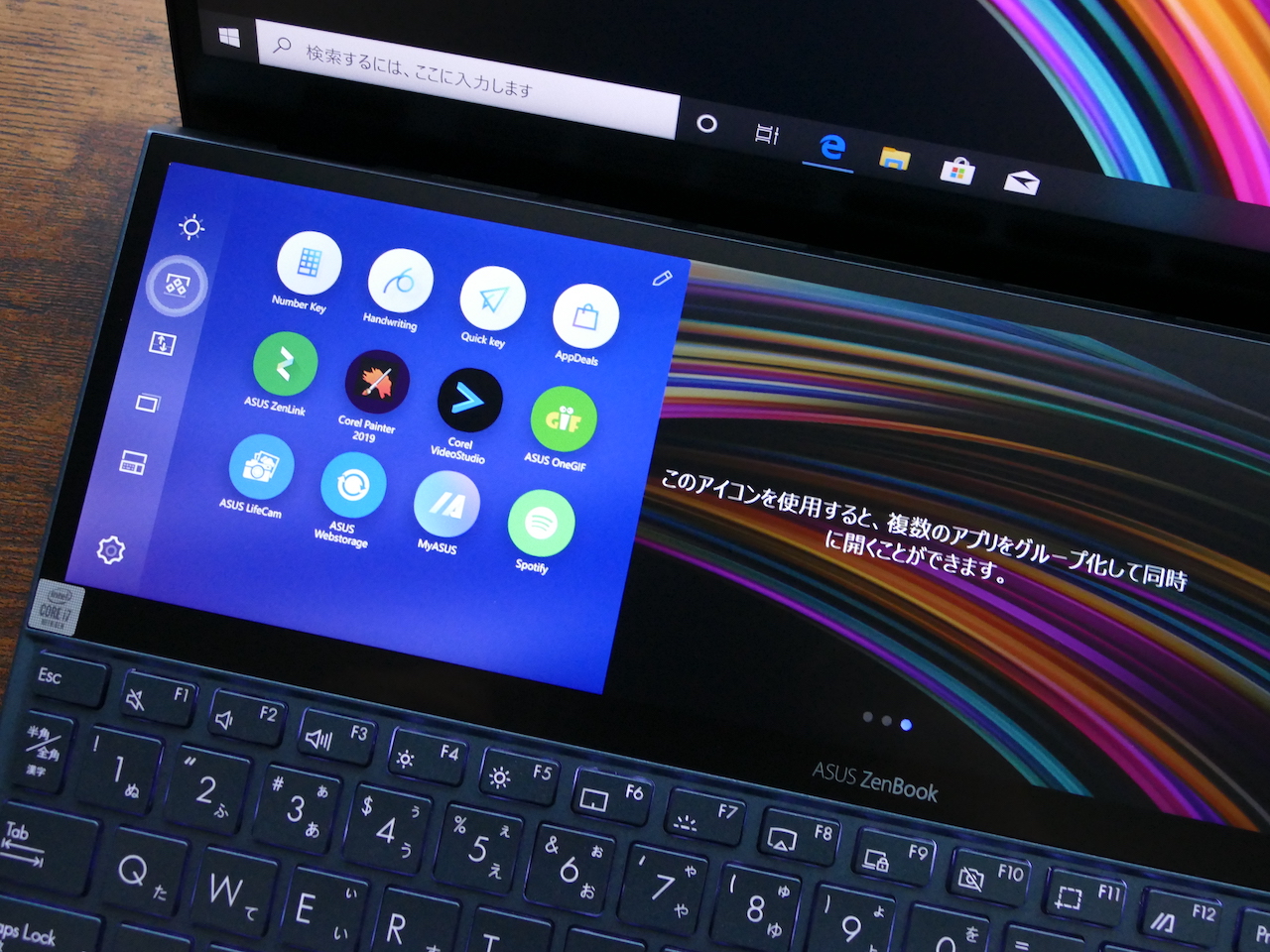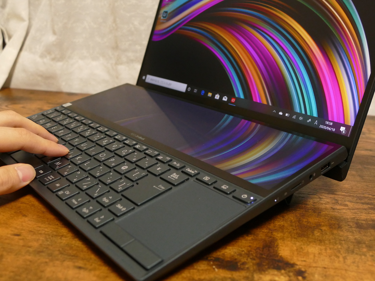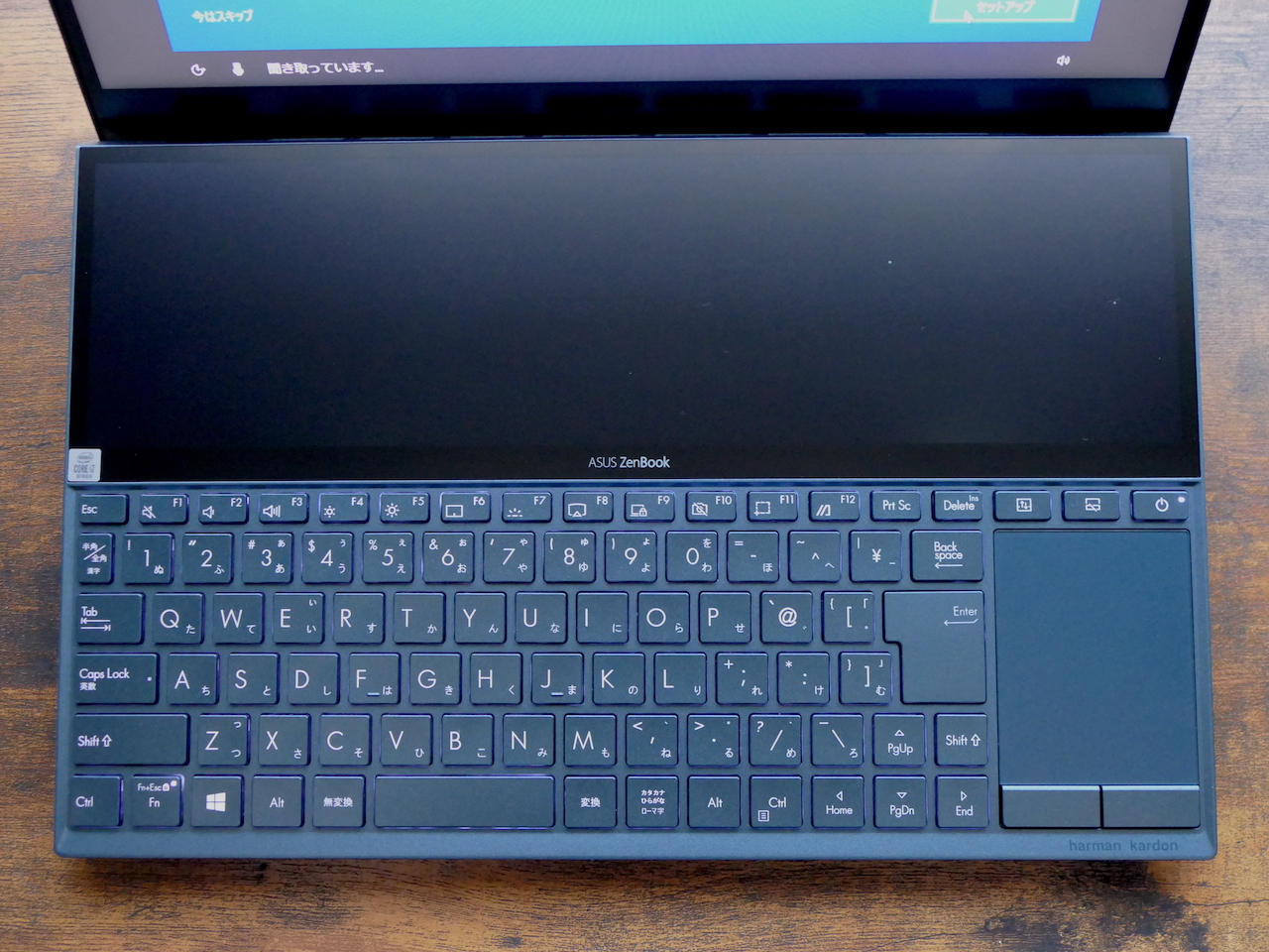 ▲Screen Pad+が上部にあり、タッチパッドはキーボード右側に寄っている