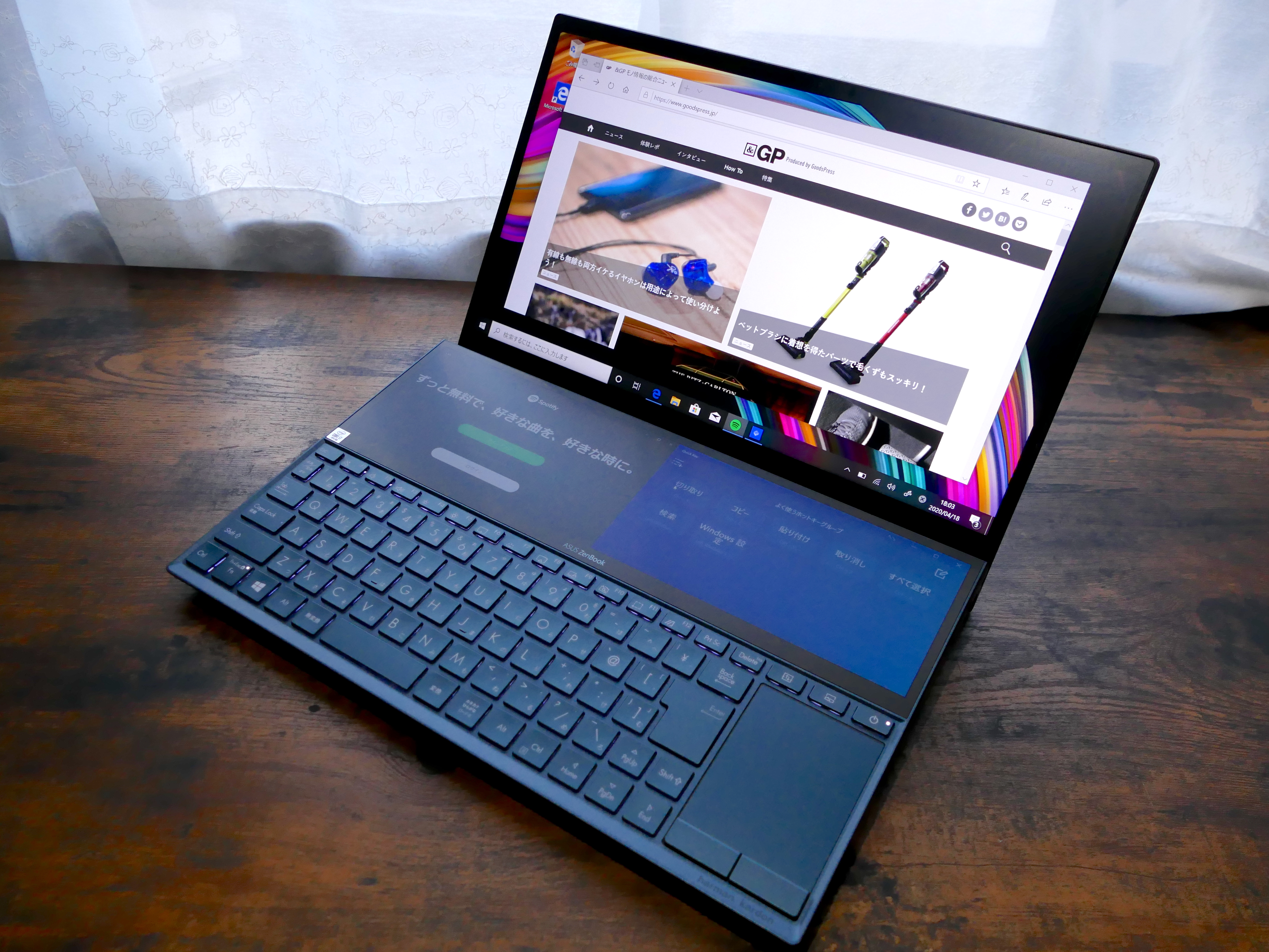 実は、ZenBook Pro Duoでは連続駆動時間が5時間台だったので、数値的には2倍以上に伸びています。2画面搭載ながらも“普通のノートPC”の感覚で使えるようになったのはうれしいポイントです。