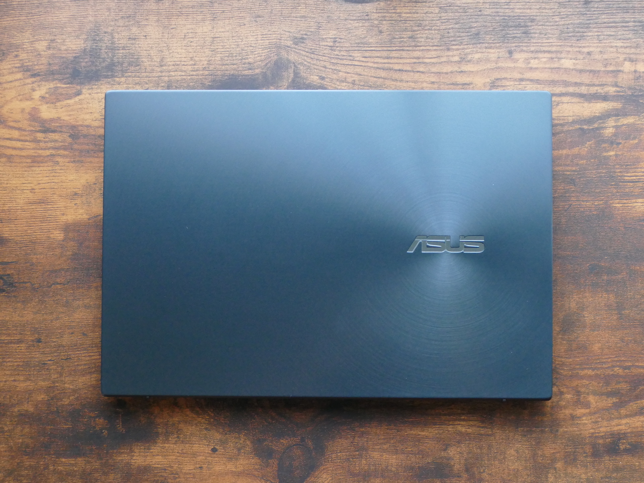 ▲「ZenBook Duo」。天板にはロゴマークを中心にスピン加工が施されていて、シンプルながらも洗練されたデザインに