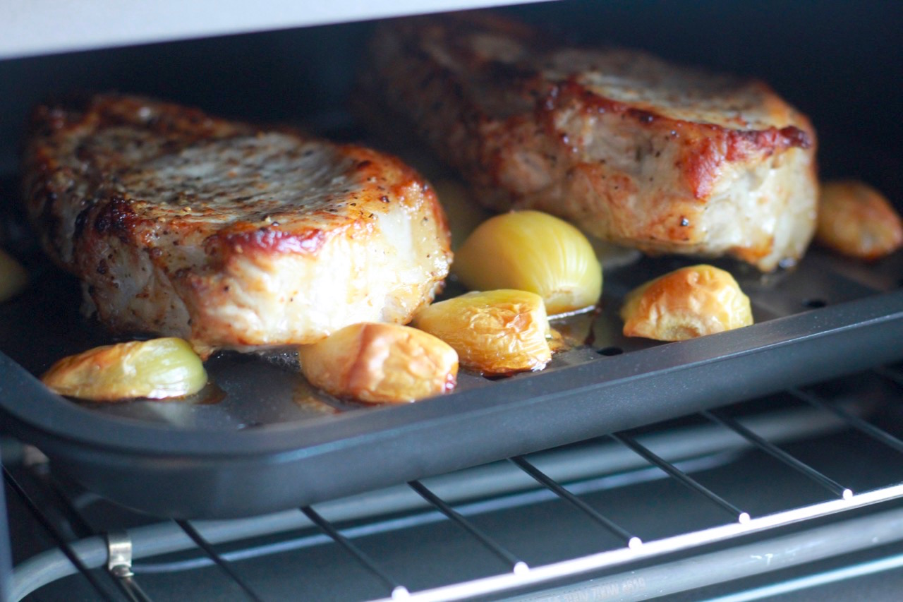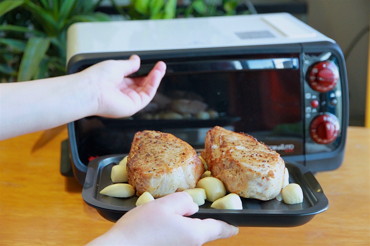 もちろん普通のオーブンレンジでも大丈夫ですが、今回はトンテキ。表面はザクザク香ばしく、中はふんわり焼いて、濃いタレを絡めて食べたいので、庫内で熱風を対流させて食材を焼き上げるコンベクションオーブンを選びました。