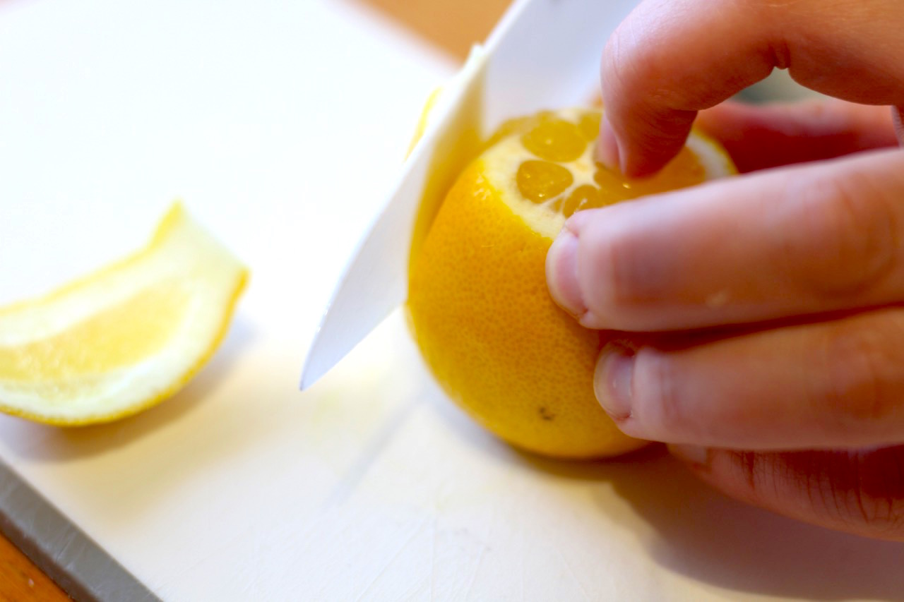 その他に使うのは、無糖の炭酸水とレモン。レモンは1杯あたり3つほど。皮の味が強すぎるのが好きでないので、丸ごと皮をむいて使います。