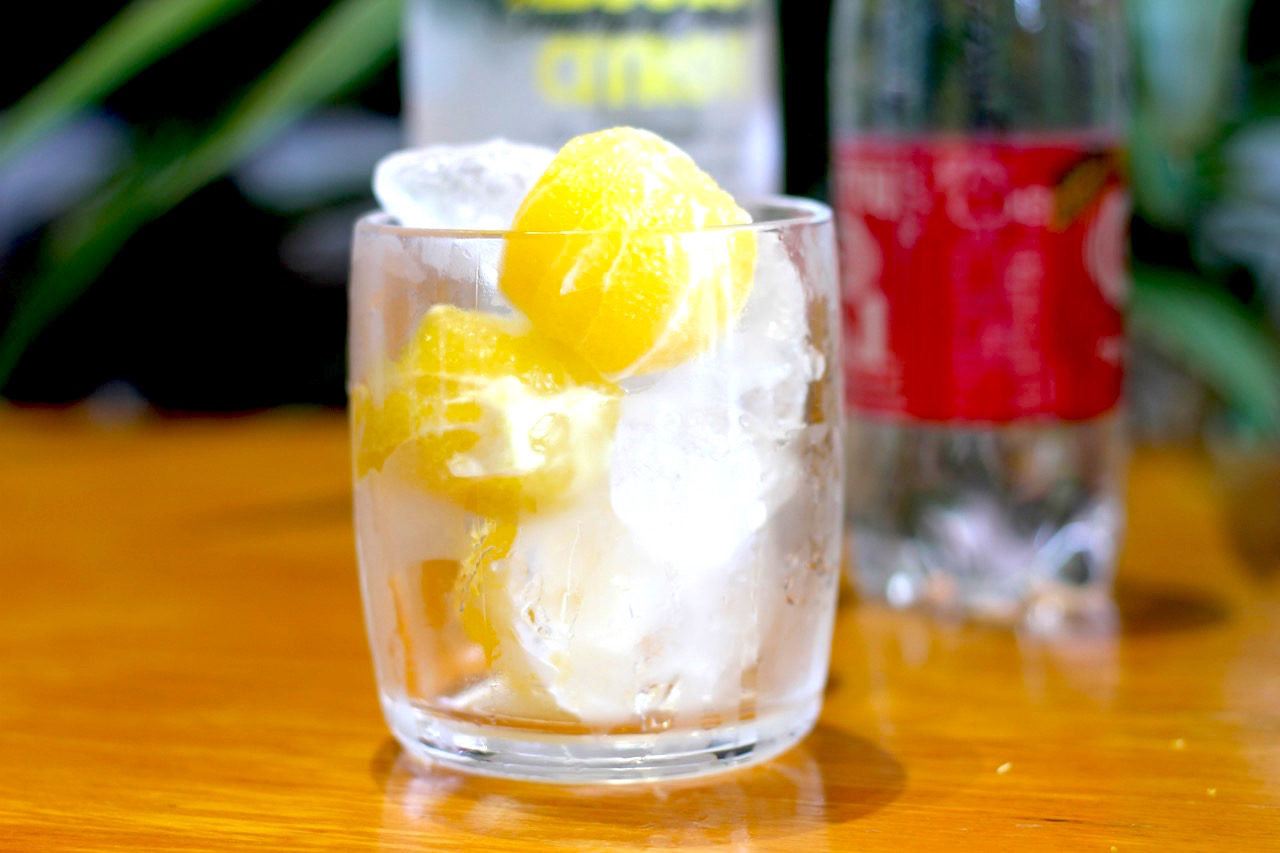 グラスにたっぷりの氷とレモンを詰め込めこんだら、しばし冷凍庫で待機してもらい、飲む直前にウォッカと炭酸を好みの割合で注ぎます。