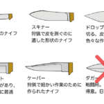 カスタムナイフで人気のある主要なナイフ形状の一覧を見ると、キャンプシーンで人気のナイフデザインは、欧米の狩猟文化がベースになっているものが多いです。日本伝統の刃物とは形状が同じところもあれば、違うところもあり興味深いですね。上下に刃がついた両刃のダガーナイフは日本では禁止されていますので、絶対に作らないよう注意してください。