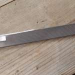 さあ、こちらが私のオリジナルナイフ第一号(のベース)です。まだまだカッコ悪いですね。ここから形を整え、磨き上げていきますので、次回をお待ちください!!