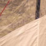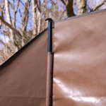 3本のポールを通して、横方向にもポールでつなぐ独自機構で、焚き火用ハンガー、ランタンハンガーになります。両サイドにある三角のフラップは巻いてトグルで束ねてもよし。なんだかワクワクしますね。